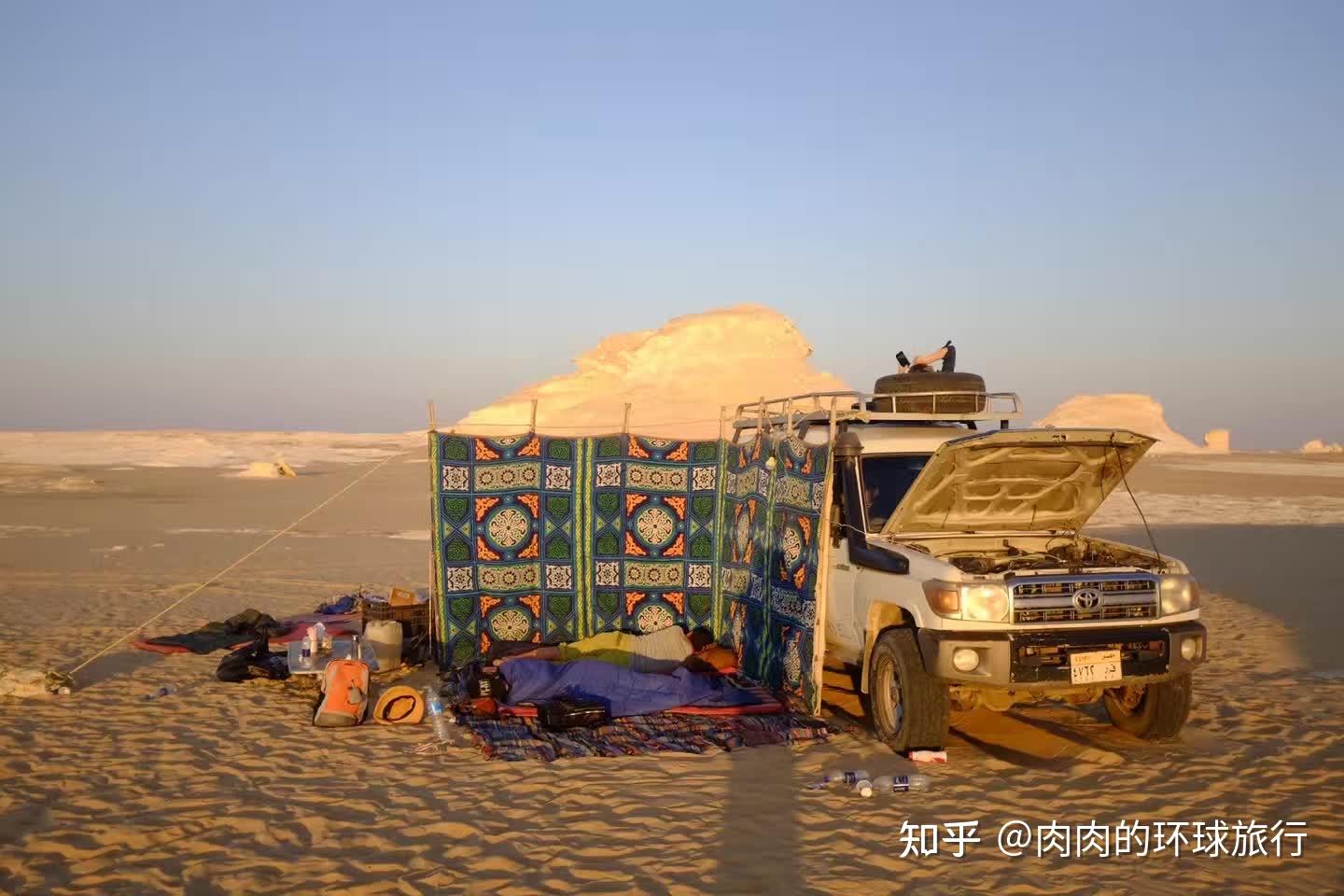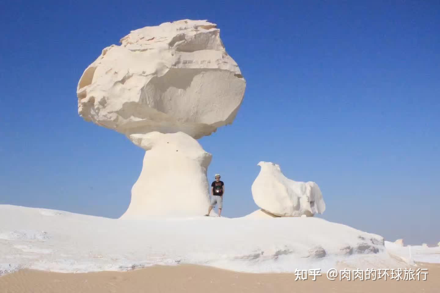 说实话我觉得景色稍微差一点 没那么壮丽 不过埃及的价格低一些 而且也挺好玩的 从开罗坐越野车开过去玩一天 晚上睡床垫 第二天走 看了各种黑白奇石 沙漠景色 晚上烧烤看星星 还有野生大耳狐来捡骨头吃 挺有意思的