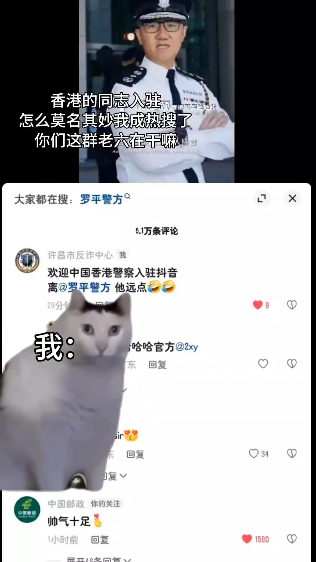 2023年11月19日,香港警察官方抖音号正式入驻平台,视频很帅、很酷,瞬间获赞200多万。网友的评论“离罗平警方远点”瞬间让罗平警方爆红网络。