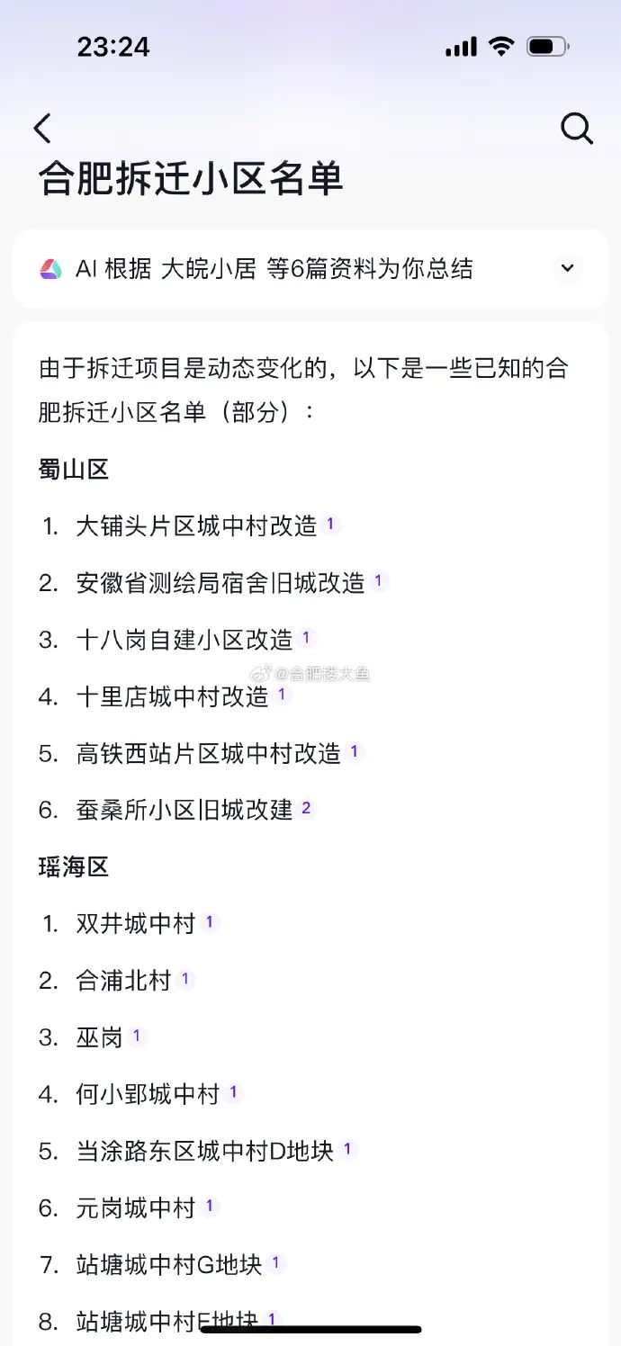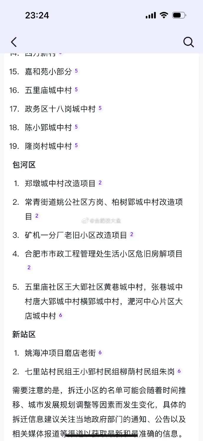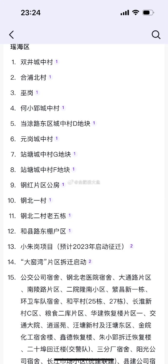 近日,又有网友曝光合肥待拆迁小区详细名单: