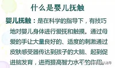 这里的「婴儿按摩」指的其实是「婴儿抚触」。是指宝宝满 12 月龄以内,通过父母或医疗保健人员对亲子肌肤进行有规则的触抚。