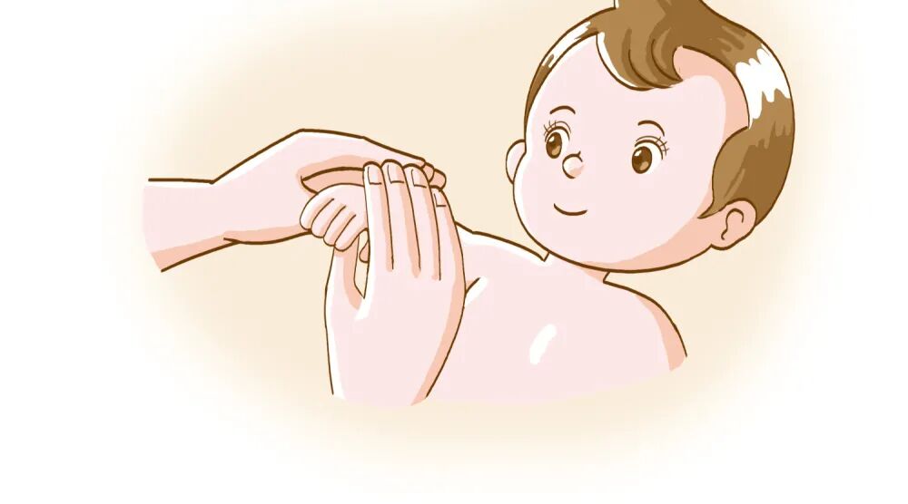为了减少摩擦和刺激,抚触前需要温暖双手,倒一些婴儿润肤油或抚触油于掌心,双手涂匀,轻轻在婴儿肌肤上滑动。