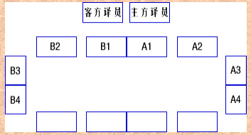 A为上级领导或外宾席,B为主方席。当A为外宾时,A3与B3分别为客方与主方议员。