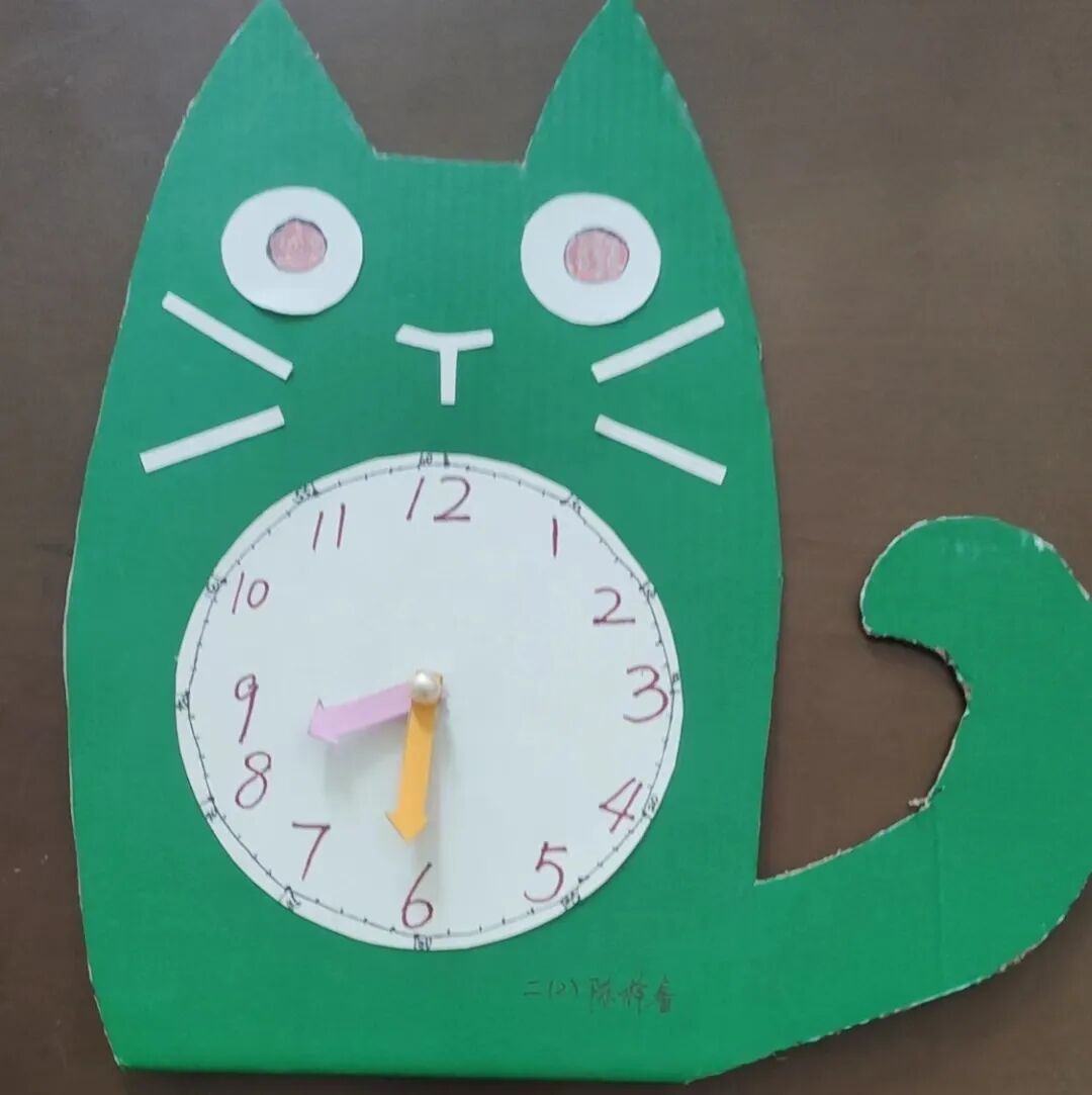 每一个钟表作品对于他们而言,都是一份思考与想象,是一份热爱与创造,是一份个性与独立。妙趣横生的数学实践活动巧妙地链接了生活和数学。通过这次数学实践活动,孩子们在“做”中思,“玩”中学,“用”中想,不仅丰富了对时间的“感受”,而且建立了初步的时间观念和意识。正所谓:一寸光阴一寸金!让我们都能合理安排时间,做时间的小主人!
