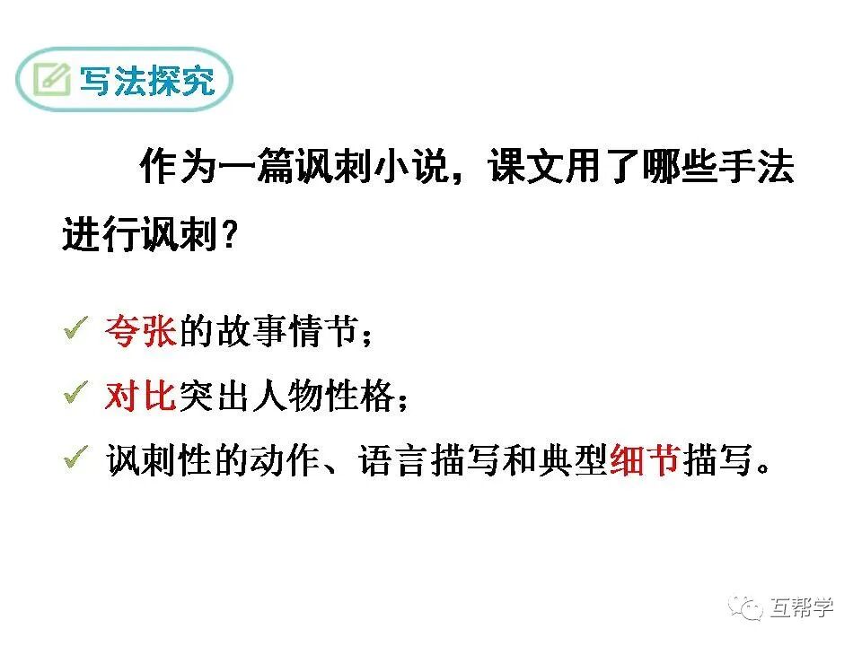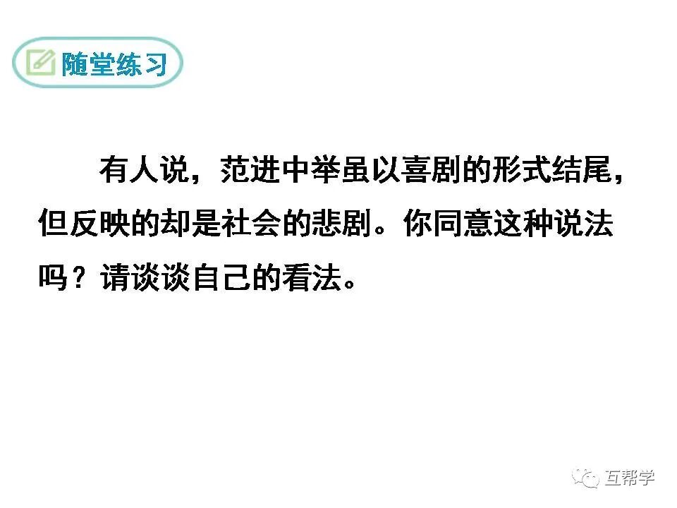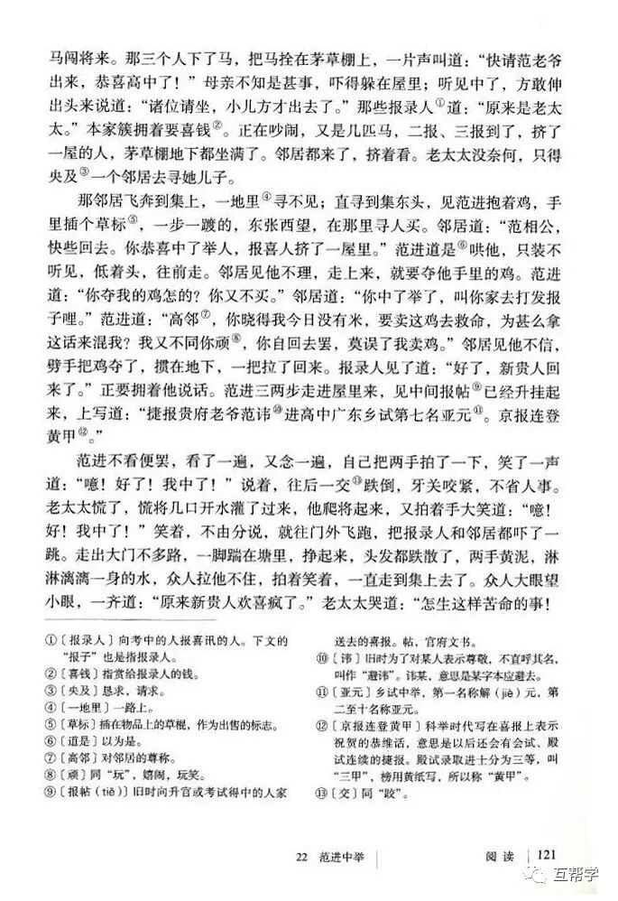 7.范进中举惊喜发疯这一情节,运用了什么写法?有何作用?