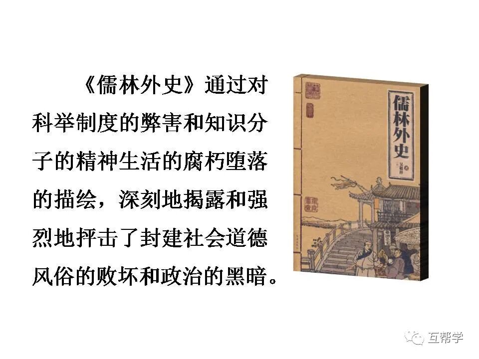 中国封建社会的科举制度始于隋炀帝设进士科,明、清两代科举制度更加严密,考试题目仅限于“四书”“五经”,必须写八股文,使广大知识分子变成思想僵化的“禄蠹”,受害更深。他们一旦科举得中,或把持官府,或横行乡里,而科举落第者则伪装名士,争做统治阶级的帮闲或帮凶。《儒林外史》正是在这样的背景下诞生的。