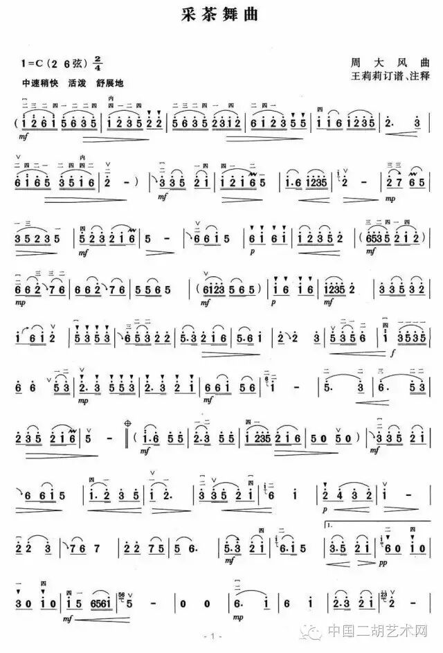 《采茶舞曲》是一首浙江民歌,周大风词曲,作于1958年。原为越剧《雨前曲》主题歌及舞蹈配乐,后根据歌曲改编成舞蹈小品《采茶舞》。“采茶”原是中国一种民间歌舞体裁,流行于南方产茶区,用于表现种茶、采茶的欢乐情绪。这首采茶舞曲保持了民间采茶歌舞的基本风格,采用民族的五声徵调式,又有调式交替的素材,曲调欢快、跳跃,再现了采茶姑娘青春焕发的风貌。《采茶舞曲》在20世纪50年代一度极为流行,有较大的社会影响,70年代经我国著名歌唱家朱逢博的演唱,更是红极一时。