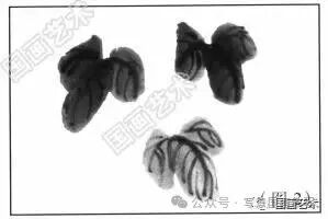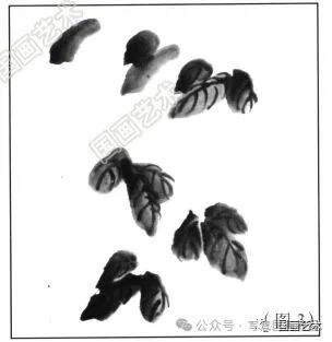 画叶子时用笔要特别注意墨色的变化,一笔中要有浓有淡,这样才能产生虚实、远近和明暗的效果。