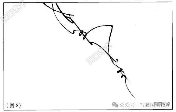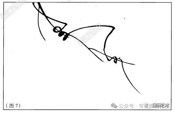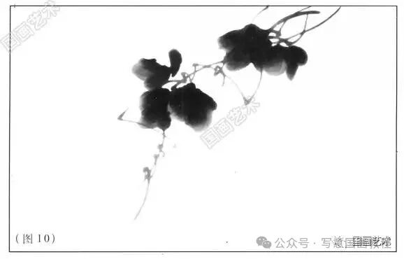画藤蔓时,须用较细的笔来画,中锋用笔,肘腕并用。线条的长短、粗细、刚柔,犹如音乐的节拍,有高低强弱之分。画时要使腕与肘协调,灵活运动。要悬肘,才能得心应手。