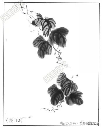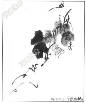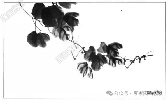 藤的用笔要有精神,要有几处粗笔,表现出生气来。藤蔓要深入叶子里,来龙去脉要清楚,要有一两条主线,其他作为配合。要注意主藤的来龙去脉、走向及布局的开合。