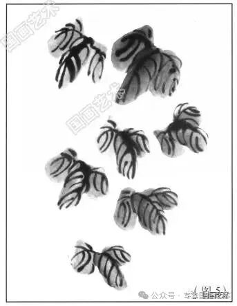 每片叶子的朝向不同,因此每次用笔皆要有变化,表现出叶片的翻转正侧,这样显得生动、灵活。