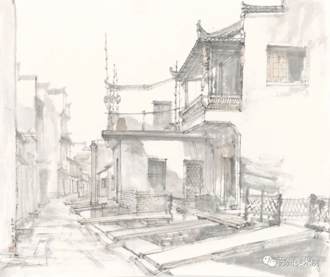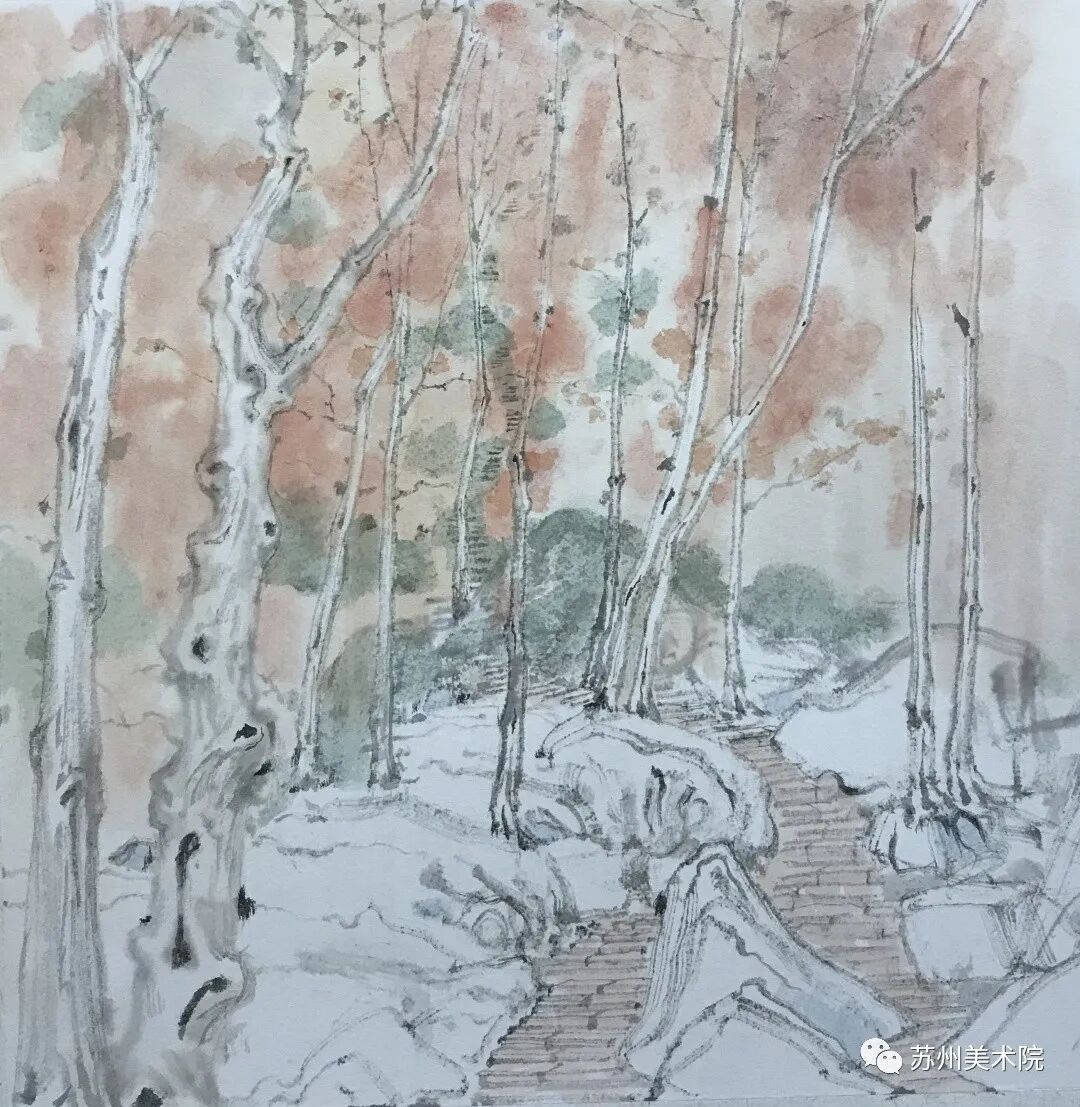 我们还先后去了婺源东山西山写生,有陈危冰、孙宽、谢士强、王斌老师四个老师带队,一起写生,老师们认真的态度感染了我们,白天一起认真画画,晚上还集中点评,整个田园班写生、临摹、创作。活动安排得相当的丰富,使我们学到了不少,陈老师的风格化笔墨写生示范讲解。孙老师写生的移步换景,可观可游的构图推敲取舍。谢老师灵动的用笔和风格化的大量熟练的写生,王老师的构图和笔墨关系,都给了我们启示。在写生过程当中,老师们都相当的认真,始终不停地画,从早晨六点半到晚上八点。早晨六点半一直到晚上五点,晚上还要进行习作的点评,整个课题通过临摹,写生,创作,使我们在构图,笔墨的表达,创作以及风格等方面,学到了不少东西,受益匪浅。