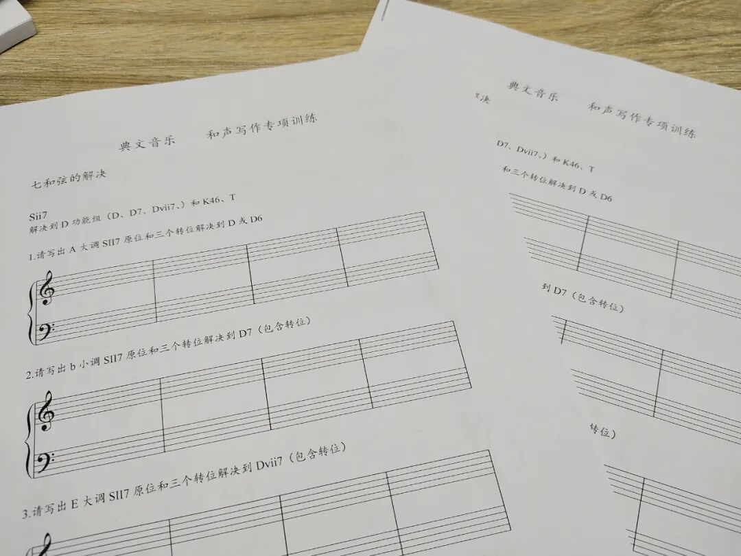 如果在和声写作题目中,用上比三和弦进阶一点的七和弦,就是你的加分项,但是我们学过乐理,知道七和弦因为自身包含七度音程,是不协和音程,要解决到协和音程,所以只要是七和弦就必须要解决