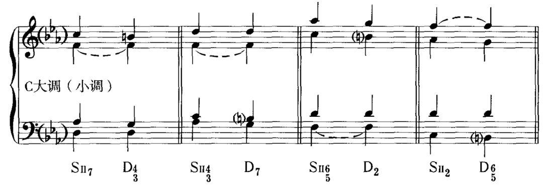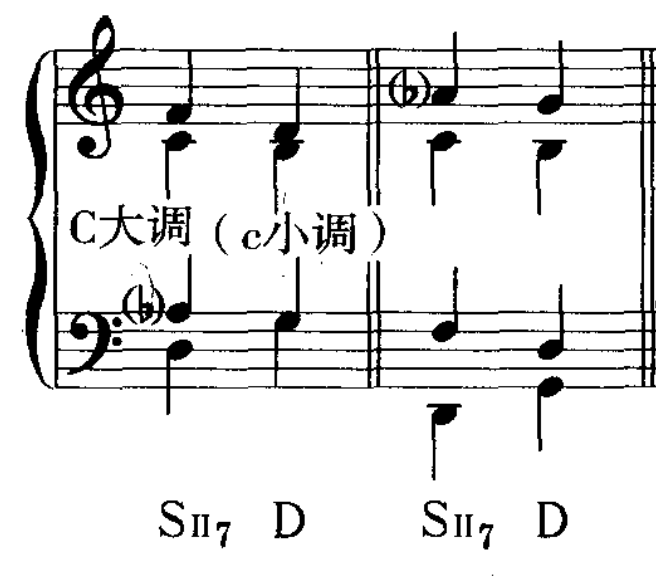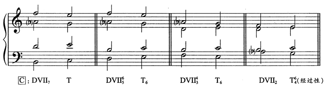 3.原位属七的根音解决到下一个和弦(T、TSvi)的根音,转位属七的根音保持