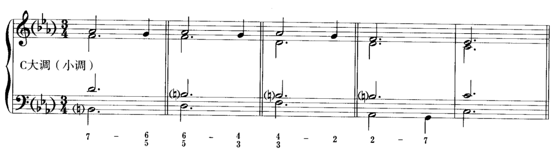 3.每个音解决一般级进或保持比较常见,不会出现大跳进(≥4度)