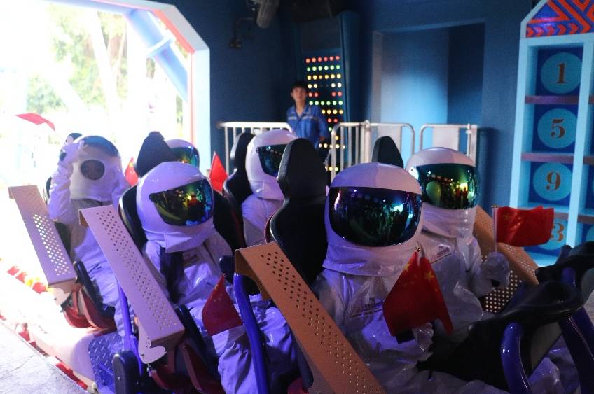 还可以穿上航天服乘坐火箭过山车