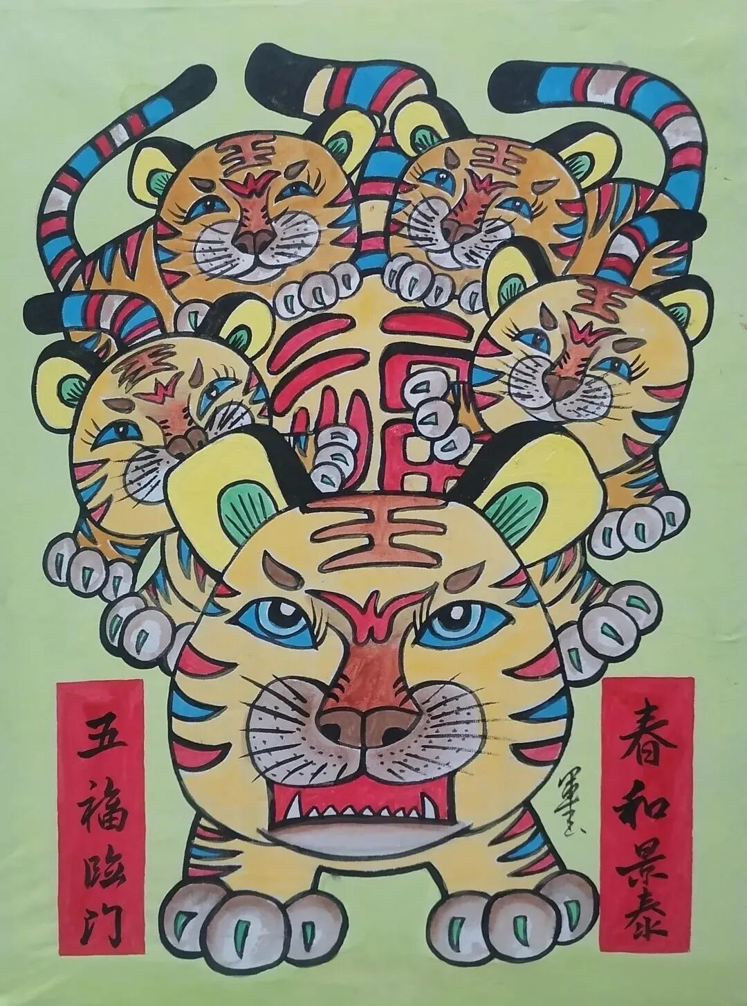SPRING FESTIVAL 虎步奔腾开胜景,春风浩荡展鸿图。 牛耕绿野千仓满,虎啸青山万木荣。 乾元启运三阳泰,斗丙回寅万户春。 人间喜庆康平世,虎岁承欢幸福春。 李元 《双虎临门拜大年》 曹秀文《福虎临门》 陈卫雄《祥虎迎春》 李元《瑞虎丰年》 严军杰《五福临门》 陆学英《虎娃迎春》 邱建国《岁岁平安》 王金喜《萌虎添喜》 朱永金《俏虎闹春》 李元《勇虎前行》 开放时间 尊敬的市民朋友: 根据疫情常态化防控工作的指导意见,结合本院实际,“春节”期间金山农民画院开放时间具体如下: 展览时间:2022.1.28-2.20 展厅开放时间:春节期间正常对外开放 (9:00-11:00,13:00-16:00) 预约电话:37910285 1、旅游出行,请携带身份证,出示“随申码”、预约码、行程码、疫苗接种记录等信息,配合工作人员进行体温测量; 2、在室内观展期间,请做好自我防护,坚持“防疫三件套”“防护五还要”,自觉遵守场馆疫情防控规定; 3、出行返程后,要坚持做好健康监测和个人防护,切勿掉以轻心。