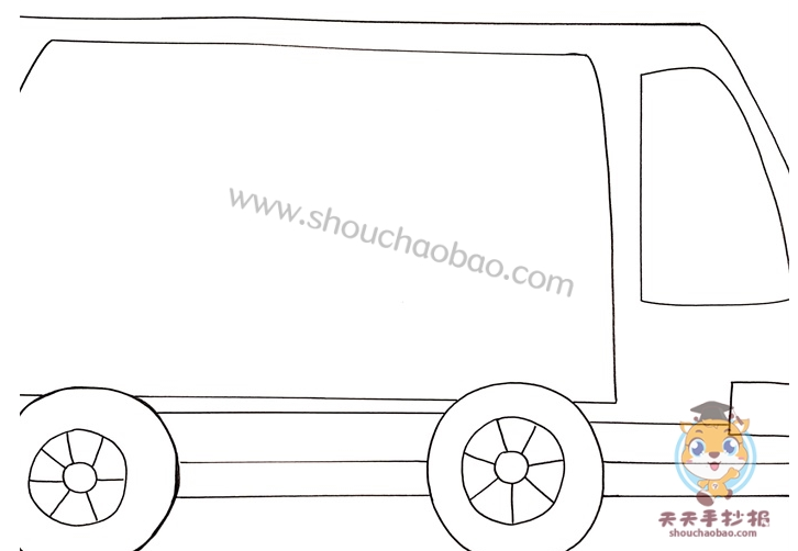 1、在画面中画出一个大大的公交车,公交车有大大的车门和大大的车轮,整个公交车都是很大的。