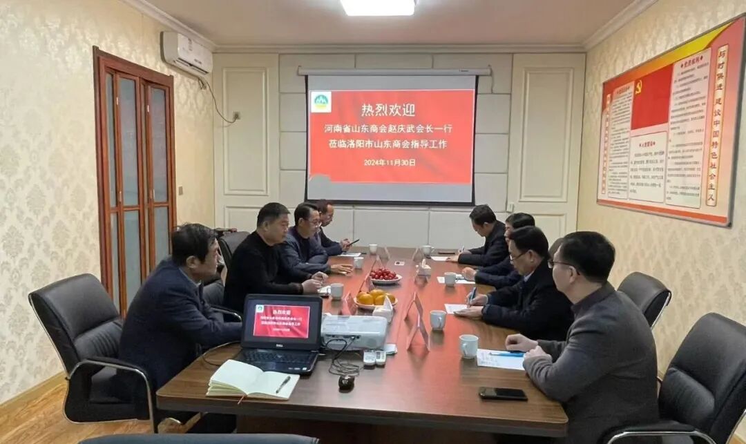 【本会讯】11月30日上午,会长赵庆武、党委书记胡君、常务副会长赵月、副会长任崇宇、秘书长刘敦丰一行走访洛阳市山东商会,会长刘新强,党支部书记、常务副会长郭永生,常务副会长李明顺等热情接待。