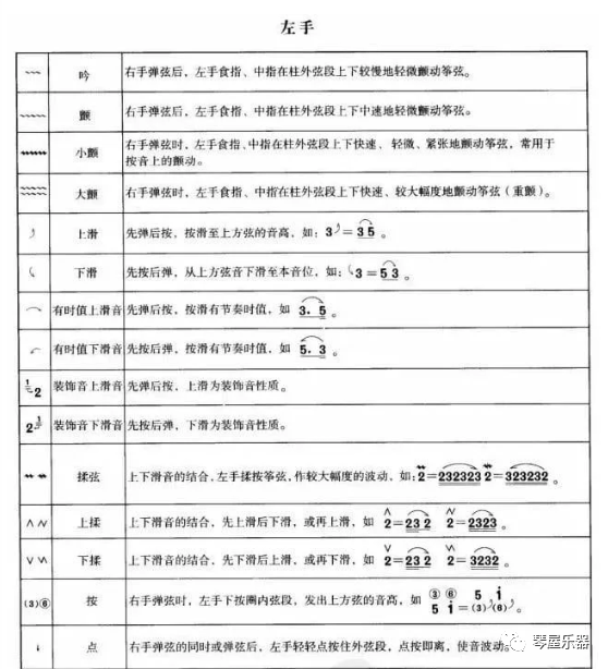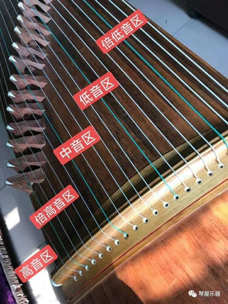 怎样认识古筝曲谱 学习古筝,一定要认识它的曲谱,通常我们要先学会认识古筝的琴弦,古筝一般有21弦。 以D调为例,首先就是要分音区,总共分为五个区 ,上行一次是倍低音区5根 ,低音区5根 ,中音区5根,高音区5根,倍高音1根,总共21根,如图所示: 所有的绿色琴弦都是sol(5),5所在的音区就分别为倍低音5,低音5……以此类推共4根、 所有的mi(3)都在其对应音区的5的上面,6都在5的下面,2都在3的上面,1在2的上面。 如果1、2、3、4、5、6、7这七个代表唱名的数字上下都没有点,代表的是中音上面有一个点,代表高音。上面有两个点,代表倍高音。上面有三个点,代表最高音。同理:下面有一个点,代表低音。下面有两个点,代表倍低音。下面有三个点,代表最低音。 解说: 1、高音的点和低音的点不会同时出现在代表唱名的数字上。 2、在和弦情况中,相对低的音会记录在相对高的音的下面,而实际演奏时,对应的琴弦位置正好相反。 关于古筝的简谱知识介绍 古筝简谱乐理知识:附点音符 有的音需要延长一定的时间,记谱时就在这个音符的右边点上一个小圆点,这个小圆点就叫附点。这个音符也就被称作附点音符。附点增加原来音符时值的一半。常用的附点音符有:附点四分音符、附点八分音符等等。古筝简谱乐理知识:附点休止符知道了什么是附点音符,你也就知道什么是附点休止符了,附点休止符同样也是增加原来休止符时值的一半。 古筝简谱乐理知识:延音线、延长号 要延长某个音的时间,除了用附点之外,还常用另外的两个方法。一个方法是用延音线把几个音高相同的音连在一起,演奏的时候,这几个音加起来奏成一个音。如:5---|5---。 另一个方法是在音符的上方加一个延长号。延长号的样子像一个眼睛,它表示可以根据需要自由延长这个音的时间。延长号也可以用在休止符上。 古筝简谱乐理知识:变化音级 音乐中除了七个基本音级以外,还有许多把基本音级升高或降低的音,它们叫做变化音级。在念变化音级的时候,要把‘升”或‘降’字读出来,比如升4、降5等等。为了区别于变化音级,基本音级也叫做本位音。 古筝简谱乐理知识:变音记号 把基本音级升高,降低或回复本位的记号叫做变音记号。简谱中使用的变音记号一共有五种: 升记号#表示把基本音级升高半音。 降记号b表示把基本音级降低半音。 重升记号x表示把基本音级升高一个全音。 重降记号bb表示把基本音级降低一个全音。 还原记号表示把已经升高或降低的音还原到基本音级,也就是还原到本位音。所以还原记号也可以叫做本位号。 念重升或重降的变化音级时,同样要把‘重升’或‘重降”两个字读出来。比如‘重升1’、‘重降6’等。 古筝简谱乐理知识:调号 打开琴谱,我们可以看到1=D、或1=G的字样,这是简谱中的调号,1=D表示该曲是D调,即1音是D音。 古筝简谱乐理知识:临时记号变音记号是直接写在音符前面的,这种变音记号叫做临时记号。临时记号只对与变音记号同音高的音起作用,而且只限于一小节内,过了小节就失去作用。 古筝简谱乐理知识:节奏 音乐世界中的音,不仅高低起伏翻动,而且长短也千变万化,形成轻重缓急的效果,人们把音的长短关系及特定的强弱关系总称为节奏。 古筝简谱乐理知识:节拍 我们在说话的时候,常把某些词说得比其他词重一些。在音乐中同样有这种情况,某些音会比其他音强一些,形成重音。而且,音乐中重音的出现是有一定规律的,往往是定期的反复。强音与弱音有规律地交替出现,便形成了节拍。 古筝简谱乐理知识:小节、小节线、终止线 根据强音、弱音交替出现的规律,可以把音乐分成一个个长度相同的部分。从一个强音到下一个强音之间的部分,就叫做小节。小节是用一根直的短线划分开 古筝简谱的,这根直线叫小节线,它总是在小节的强音前面。而在段落结束或整首乐曲结束时,必须用并排的双条直线来表示,这叫终止线。写的时候还必须把右边的那根线写得稍微粗一点。 古筝简谱乐理知识:拍号 在音乐中,构成节拍的单位叫‘拍”,表示小节长短的类型时,则是用‘拍子’这个词。一小节中有几拍就叫几拍子。 拍号就是用来表示拍子的记号。它由两个阿拉伯数字来表明,上面那个数字表示一小节有几拍,下面那个数字表示以哪一种音符作为一拍。拍号写在乐谱的开头部分,紧挨在调号的后面。这二种记号的排列顺序是:先调号,再拍号。(拍号一般只写一个,除非中间更换拍号)。 古筝简谱乐理知识:单节拍、复节拍、混合节拍 在小节内,带有重音的单位拍叫强拍,不带重音的单位拍叫弱拍。 古筝简谱乐理知识:音符乐谱 中表示音的长短的符号叫音符,在简谱中用1、2、3、4、5、6、7表示。 音符相互之间的长短关系,就跟它们的名称一样:全音符=2个二分音符=4个四分音符=8个八分音符=16个十六分音符古筝简谱乐理知识:休止符乐曲中的音响并不是一直不停的,有时中间会有间断,出现无声的时间,这时,就用另一类符号——休止符来表示。休止符的名称与音符名称相似,简谱中用0表示。常用的有:全休止符0000。二分休止符00,四分休止符0八分休止符0十六分休止符0。全休止符的长度相当于全音符。二分休止符的长度相当于二分音符,等等。 古曲《春江花月夜》是一首优美动听的民族器乐曲,是我国音乐宝库中的瑰宝。它籍以山水之巍峨洋溢,花木之幽芳荣华,水