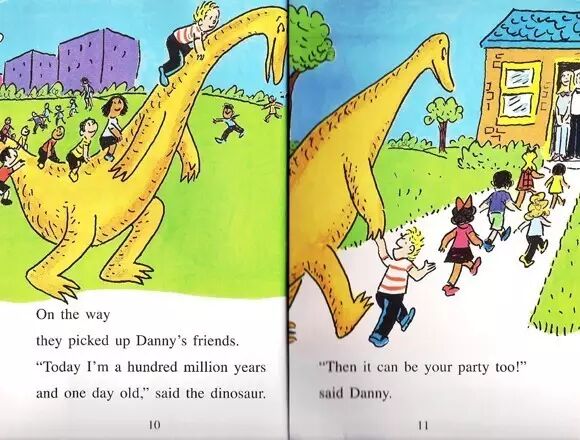 On the way they picked up Danny's friends. "Today I'm a hundred million years and one day old." said the dinosaur.