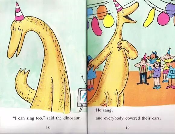 他们倆唱起歌来,其他人都拍掌了。 "I can sing too," said the dinosaur.