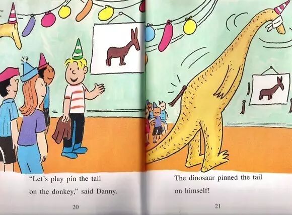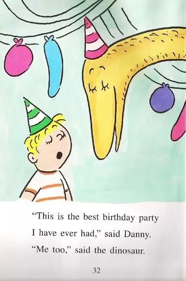 “这是我过得最好的生日派对,”丹尼说。“我也一样,”恐龙说。