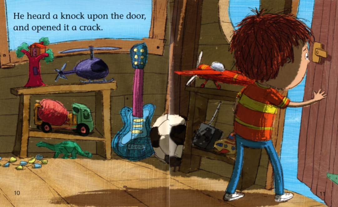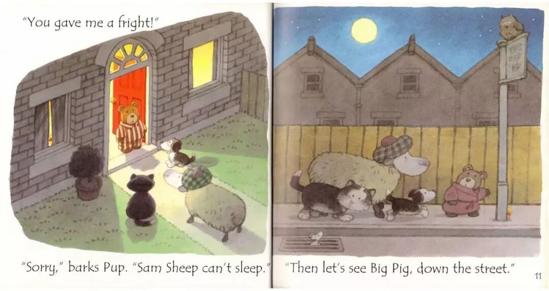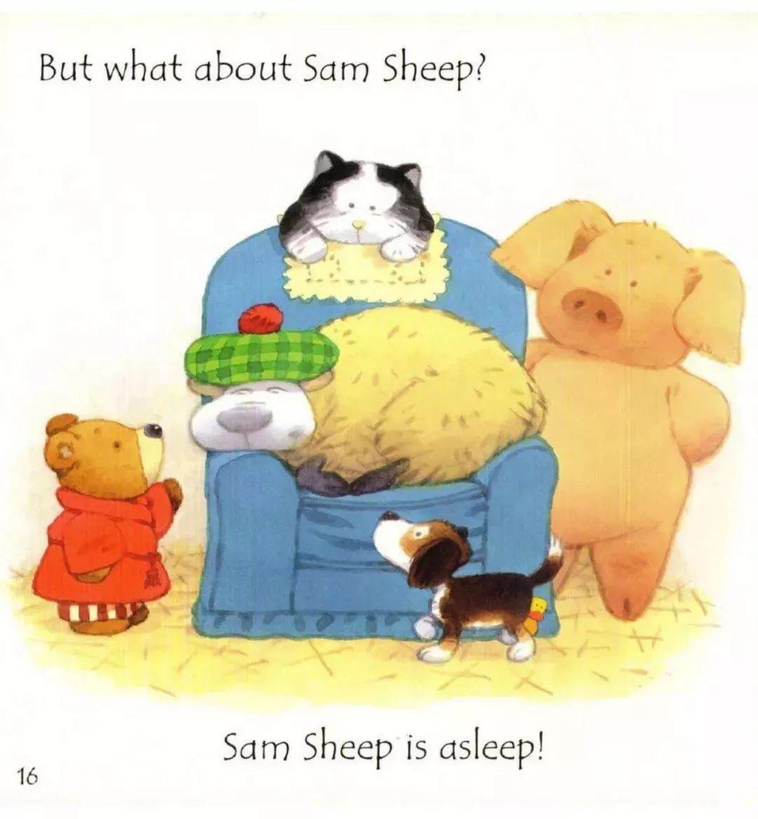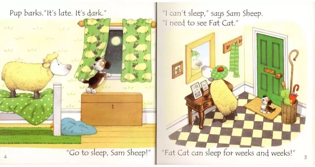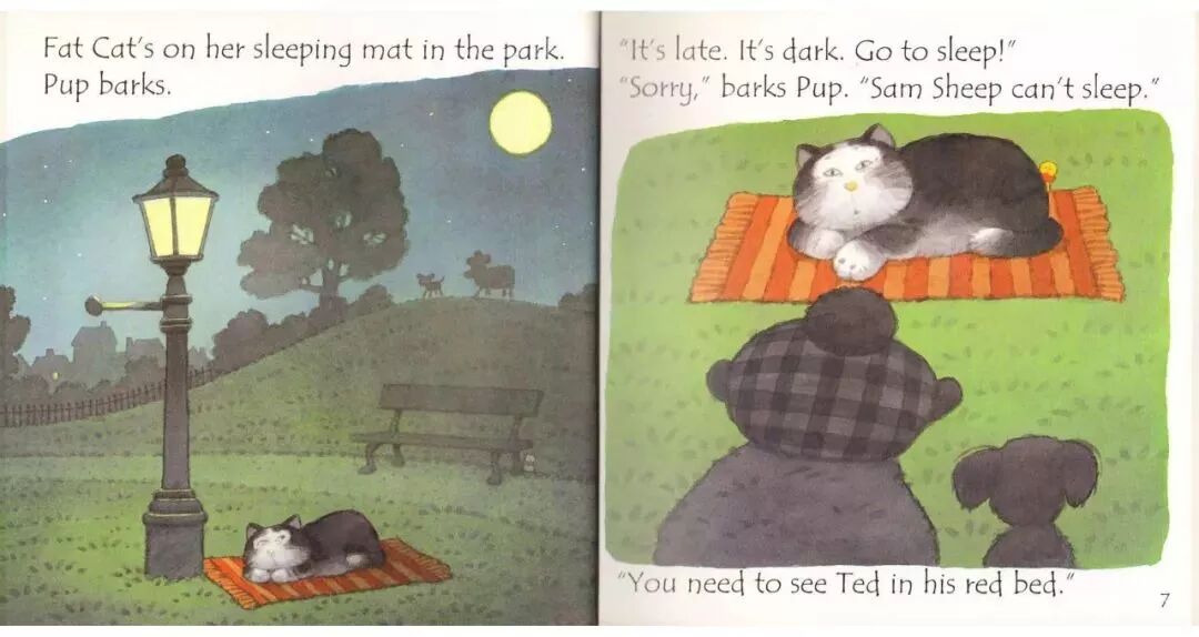 “Fat Cat can sleep for weeks and weeks!”Fat Cat’s on her sleeping mat in the park.“It’s late. It’s dark. Go to sleep!”“Sorry,” barks Pup. “Sam sheep can’t sleep.”“You need to see ted in his red bed.”Ted is asleep in his red bed.Pup bark in the dark night...Ted wakes up.On goes the light.“Sorry,” barks Pup. “Sam sheep can’t sleep.”“Then let’s see Big Pig. Down the street.”“那...我们去问问胖胖猪吧,他住在大街的另一头。”Big Pig grunts, “You woke me up!”Fat Cat yawns. “Don’t blame us.”“Sorry,” barks Pup. “Sam sheep can’t sleep.”“Can’t sleep?” says Big Pig. “That will make you sleep, Sam Sheep.”Fat Cat starts to wiggle.Fat Cat starts to wiggle.And Big Pig starts to giggle.But what about Sam Sheep?Snow fell on Christmas Eve.Snow fell on Maisy's house.Snow fell on Charley's house.Snow fell on Cyril's house.Snow fell on Tallulah's house.He was on his way to the Maisy.Everyone was invited to Maisy's house for Christmas.Flip-flap!Cyril went on snowshoes and got there slowly.Charley and Tallulah went by sledge and got there quickly.这个晚上,所有的人都被邀请到Maisy的家里一起来过圣诞节。Charley和Tallulah是坐雪橇去的,很快就到了~Plod-plop!Eddie walked...and got stuck in the snow!At Maisy's house the snow fell thick and fast.The friends hurried in to keep warm by the fireside.Everyone got ready for Christmas.wrapped presents and put up paper chains.All together they decorated the Christmas tree.They all went out to look for him.They found a shed covered in snow.They found a bush covered in snow.They found snow covered in snow…...and at last they found Eddie.Hooray!But poor Eddie was stuck in the snow!Oh,dear,Eddie was still stuck!Pop!At last,Eddie was free!That evening,everyone gathered around the tree to celebrate.Then the five friends sang Christmas carols together...And Eddie sang the loudest of all!Danny was in a hurry. He had to see his friend the dinosaur.