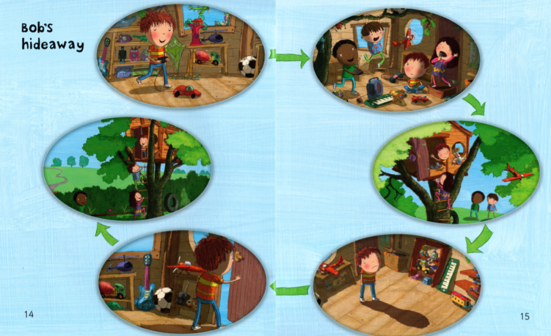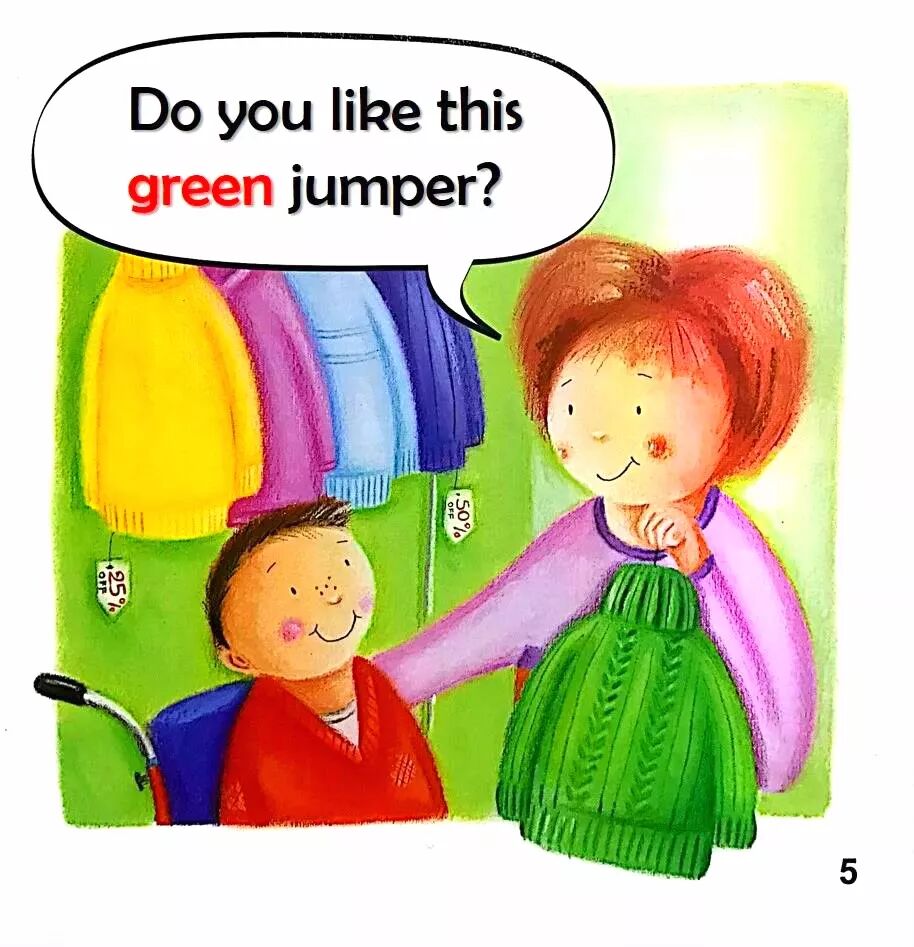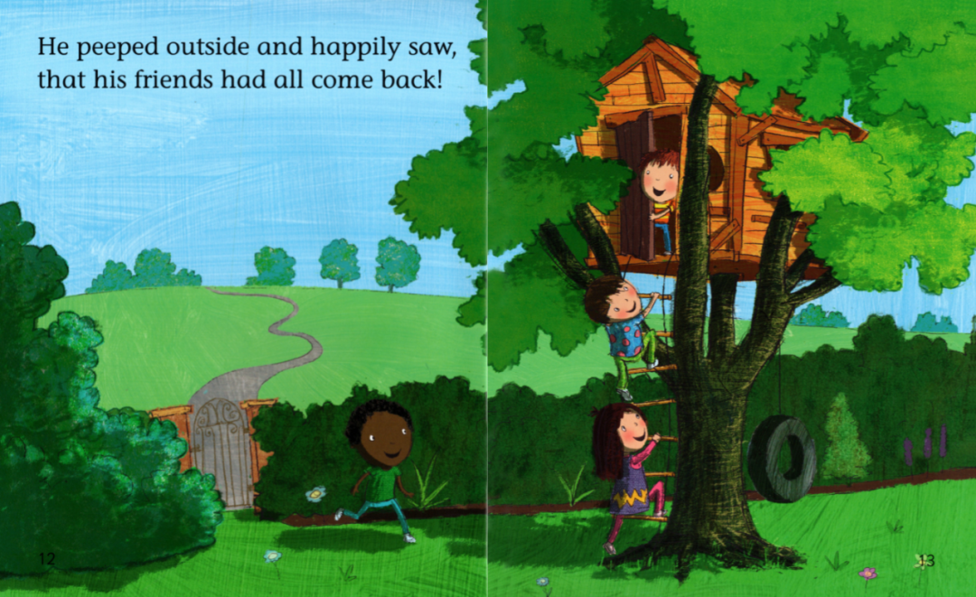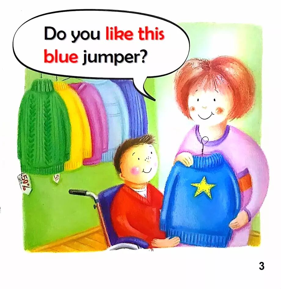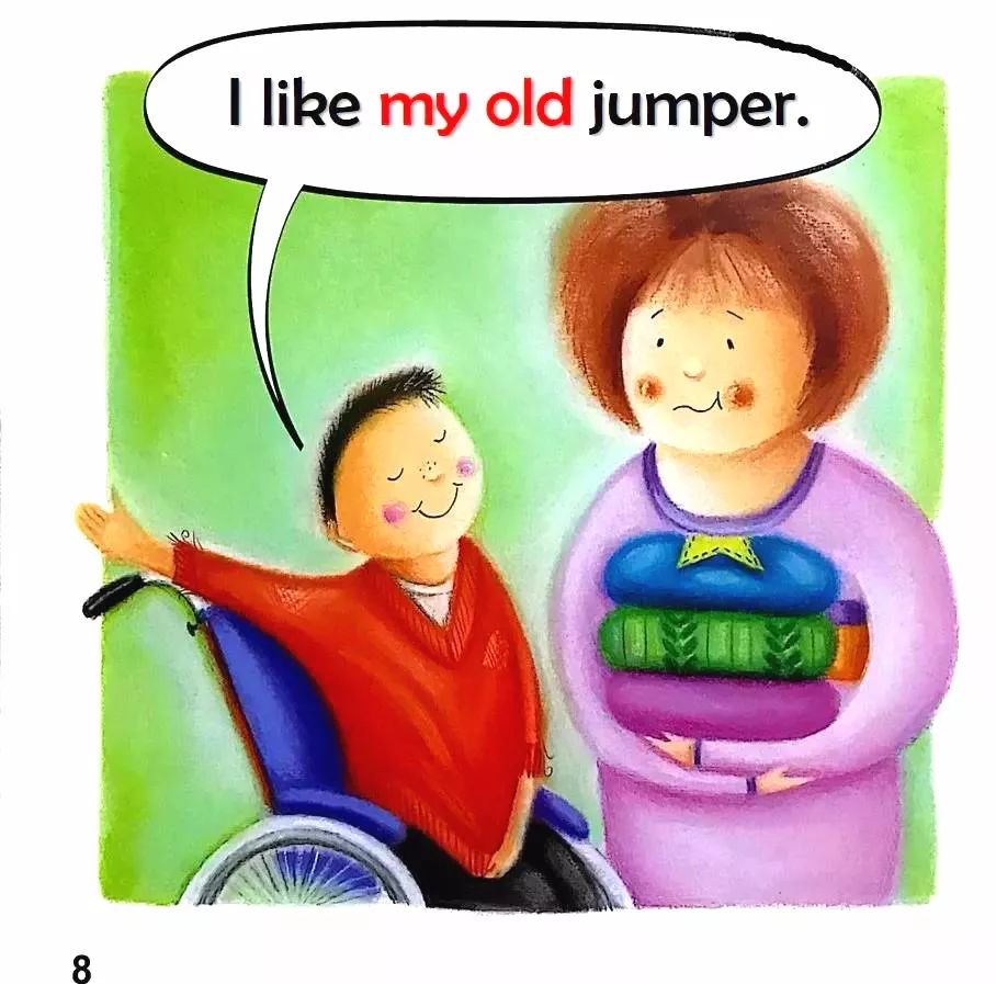 A little chick was in the nest.Little,Little legs,Little hands,Little mouth.If I had big legs like a giraffe,I could race my brother up the hill…and win.如果我有像长颈鹿那样长的腿,我就可以和哥哥比赛,而且还能赢。But I wouldn't be able to ride in the trailer.If I had big hands like a gorilla,I could open the cookie jar and take as many cookies as I wanted.如果我的手像大猩猩一样大,那我就能自己打开饼干罐,而且想要多少就能拿多少。But I wouldn't be able to eat them in my playhouse.可是那样的话,我就不能在我的玩具小房子里吃饼干了。If I had a big mouth like a crocodil,I could tell my big brother to go bed early.如果我有像鳄鱼一样大的嘴巴,我就可以让哥哥早早地上床睡觉啦!But who would tell me funny stories after dinner?If I was big like a monster,I could …Hold on tight,little hands.Not a sound,little mouth.Little legs, little hands, little mouth,perfectly little.Bob had a secret hideaway , that only he would know.He crept up there alone at night, to watch the moonlight glow.Then Bob invitedall his firends, but all they brought was noise.Bob邀请了他所有的好朋友来玩,但是他们却太吵了。So Bob decided not to share, his treehouse or his toys.Now Bob was left alone again, in his treehouse feeling sad.He found his secret was no fun, without the friends he had.He heard a knock upon the door, and opened it a crack.He peeped outside and happily saw, that his friends had all come back.他在外面东张西望,非常开心地看到他的朋友都回来了。Do you like this blue jumper?Do you like this green jumper?Do you like this pink jumper?The bear went in the hat.