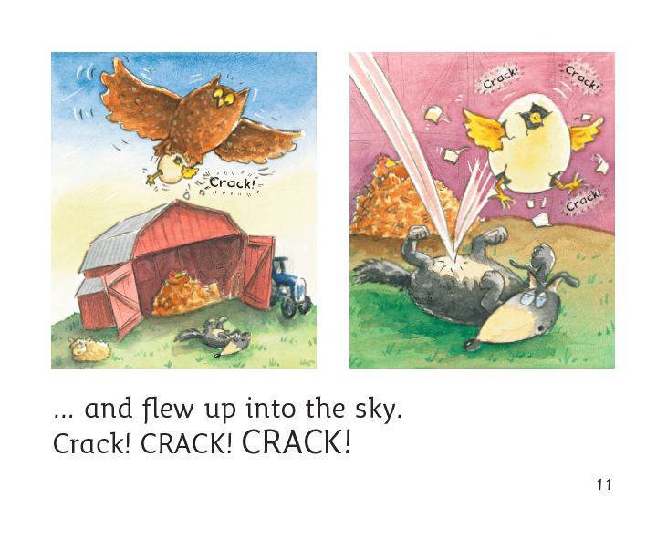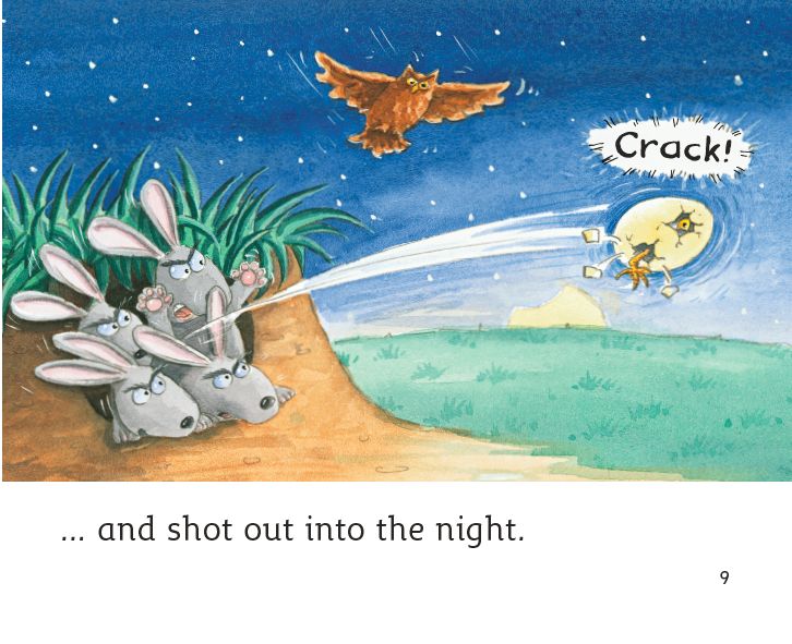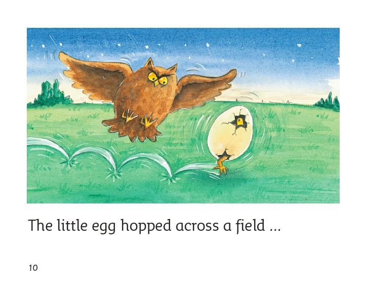 The little egg hopped across a field ...... and flew up into the sky.