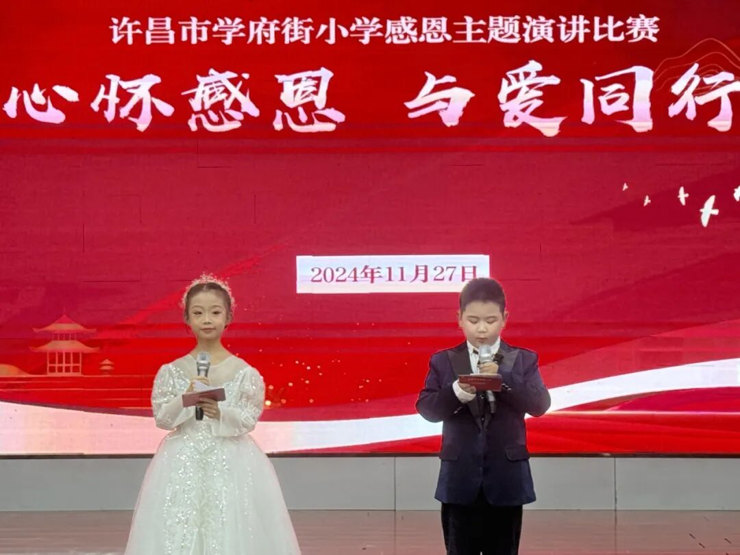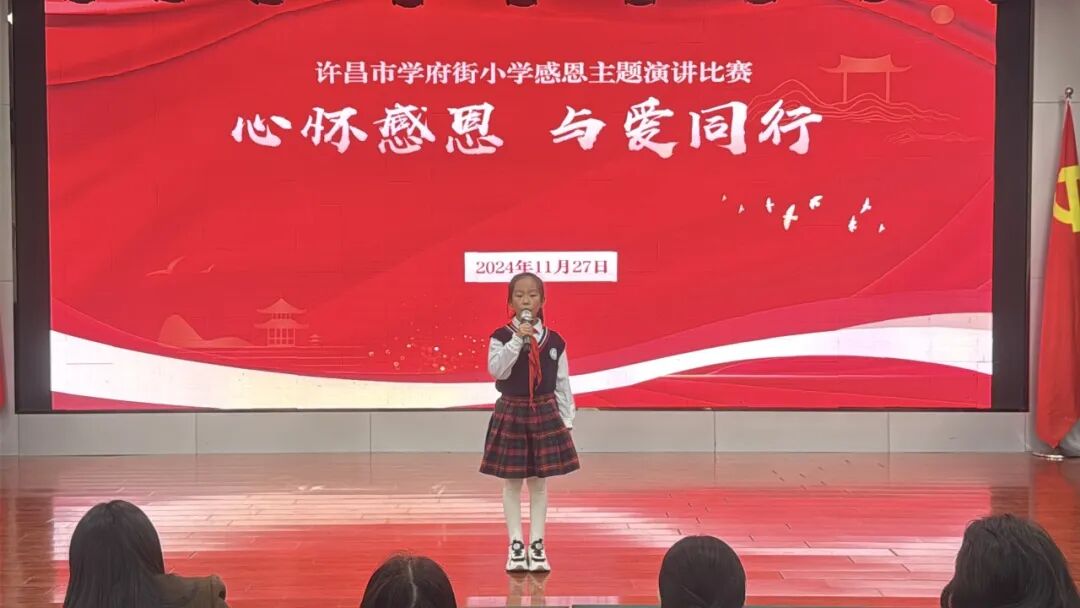 心怀感恩与爱同行为了弘扬中华民族的传统美德,培养学生的感恩意识,树立学生正确的世界观、人生观和价值观,引导学生做一个中华民族传统美德的传承者、社会主义道德规范实践者,许昌市学府街小学于11月27日举办了“心怀感恩 与爱同行”主题演讲活动。