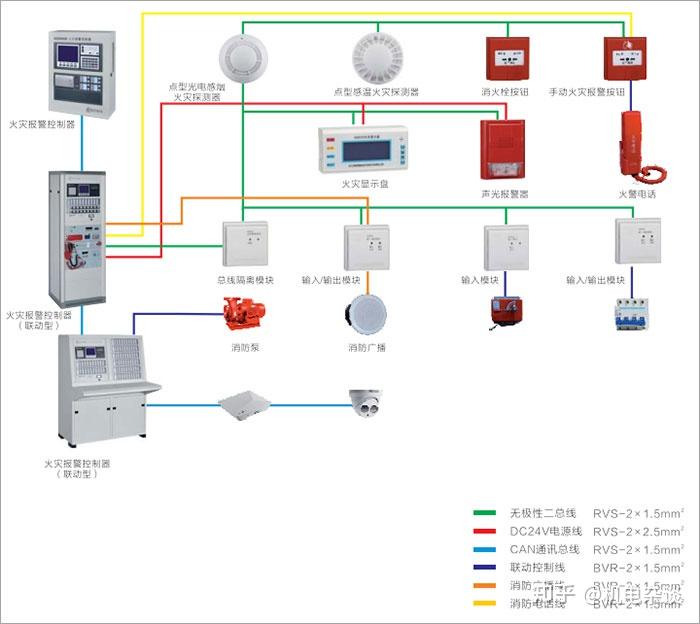 学机电,懂消防,都在点点滴滴,看这里: 1、火灾报警控制系统 是以实现火灾早期探测和报警、向各类消防设备发出控制信号并接受、显示设备反馈信号,进而实现预定消防功能为基本任务的一种自动消防设施。 2、气体灭火控制系统 专用于气体灭火装置的消防联动控制,融监控报警、自动控制为一体的控制器。 系统由气体灭火控制器、火灾声光报警器、气体喷洒指示灯、紧急启停按钮、手自动转开关等组成。气体灭火控制器独立成系统,也可与火灾报警控制器联网,接收其火灾报警联动信号。 3、消防照明疏散系统 是为人员疏散、消防作业提供照明和疏散指示的系统,系统采用集中控制、集中供电、网络信息化的监控管理。 系统由应急照明控制器、应急照明电源、应急照明和指示灯具等组成。 系统根据火灾位置信息,利用软件计算火灾疏散方案,控制灯具改变指示方向,形成光源导向,引导建筑内人员的快速、准确、安全疏散。 4、防火门监控系统 用于监控防火门的工作状态,监视或反馈防火门的开闭,关闭或释放常开防火门的监控系统。 系统由防火门监控器、监控模块、门磁开关、电磁闭门器、电磁释放器等部分或全部设备组成。有效解决了建筑中防火门通道即能便于出入,又可起到安全疏散、防火隔烟的作用。 5、电气火灾监控系统 用于监控保护电气线路,当电气线路中的剩余电流、温度、过载等电气火灾危险参数超过报警设定值时,发出报警信号。 系统由电气火灾监控设备、剩余电流式电气火灾监控探测器、测温式电气火灾监控探测等组成。是现代建筑实现有效电气火灾的早期探测和预警,避免电气火灾发生的不可或缺的系统设备。 6、消防电源监控系统 用于监控消防设备电源工作状态,在电源发生供电中断、过压、欠压、过流、缺相等故障时能发出警报信号的监控系统。 系统由消防设备电源状态监控器、电压传感器、电流传感器、电压或电流传感器等部分或全部设备组成。避免发生由消防设备电源故障而无法使用的危机情况,是建筑消防联动设备电源供电良好运行的保障。 关注机电杂谈专栏,学机电,看消防,一点一滴积成仓!