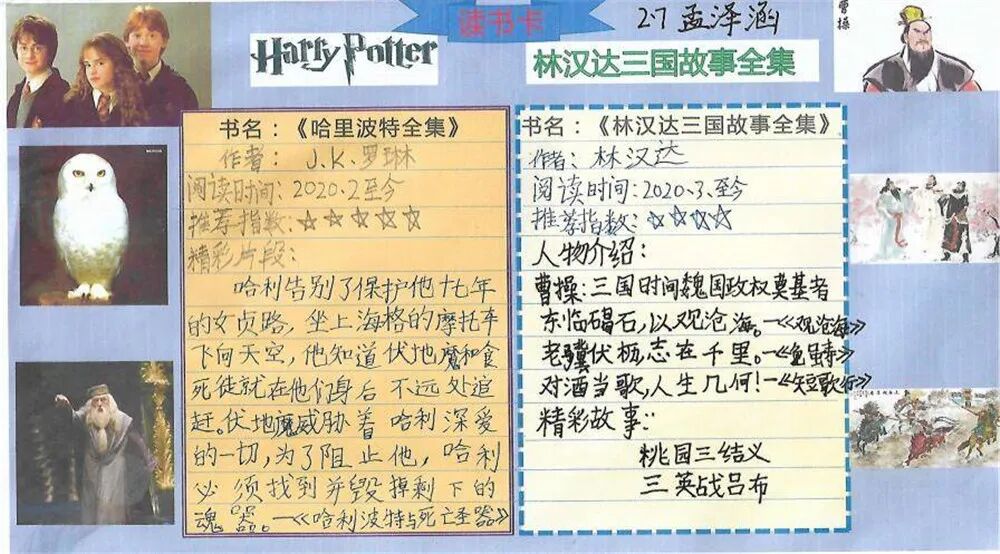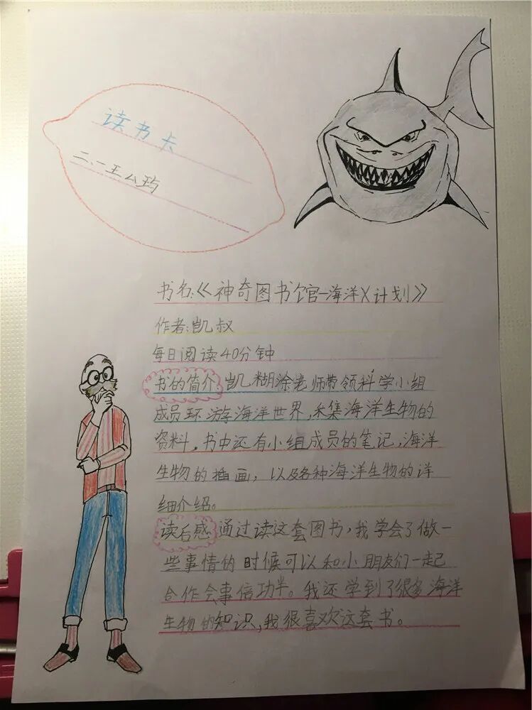 小小的卡片讲述着故事中最精彩的章节。同学们用稚嫩的画笔描绘心灵的感悟,带领我们走进美妙的阅读世界。