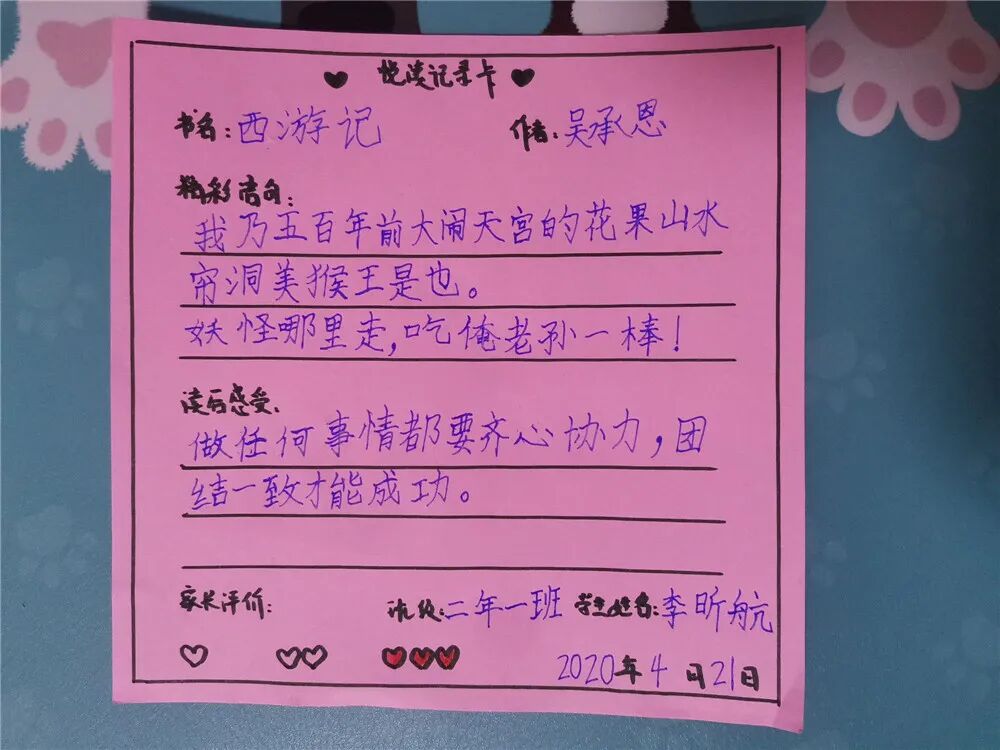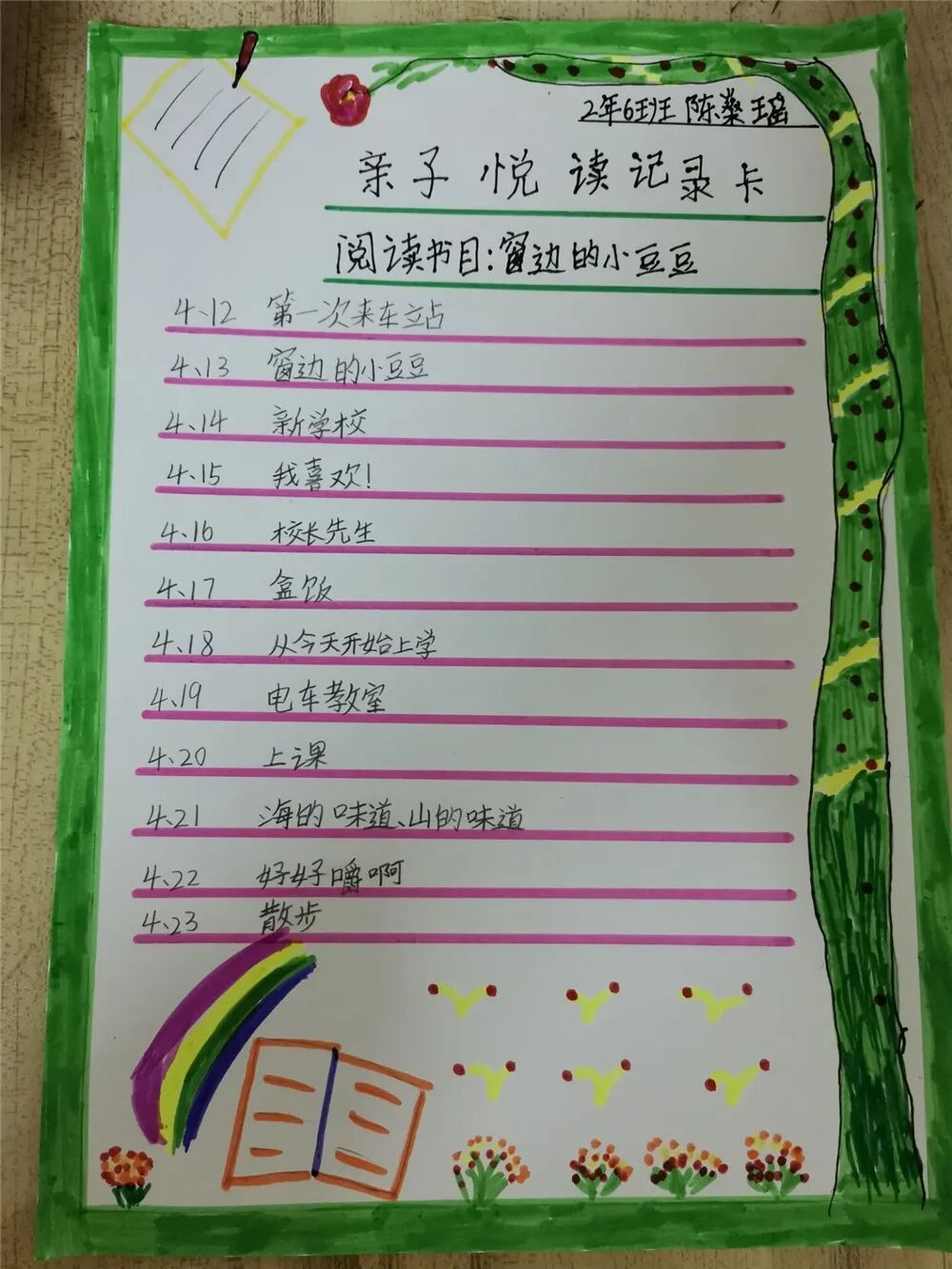 迎着温暖的春风,寻找初夏的足迹。我校四月份举办了“悦读阅美,书香家庭”亲子阅读活动。活动如火如荼地进行着,二年级的同学们也小试牛刀,在家长的指导下,绘制了各具特色的悦读记录卡。一张张精美的卡片,记录了亲子共读的美好瞬间,也记录着亲子阅读中的欢喜与忧伤、疑惑与思考……这小小的卡片,为每个家庭带去了一缕缕书香气息。