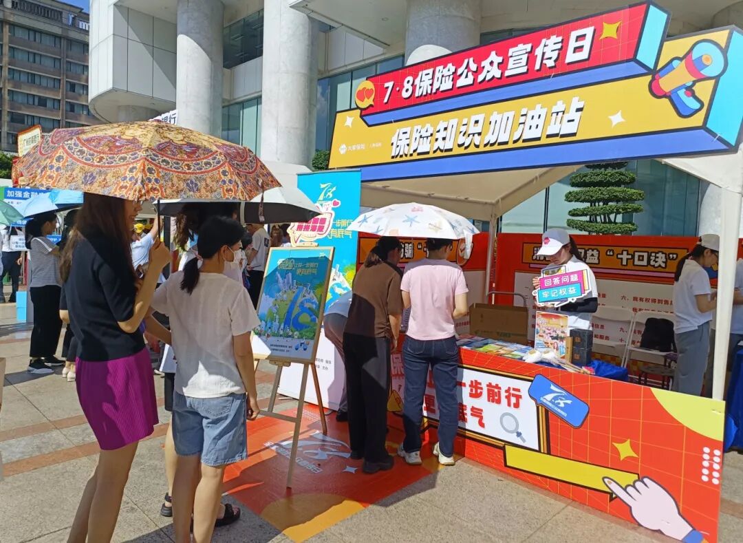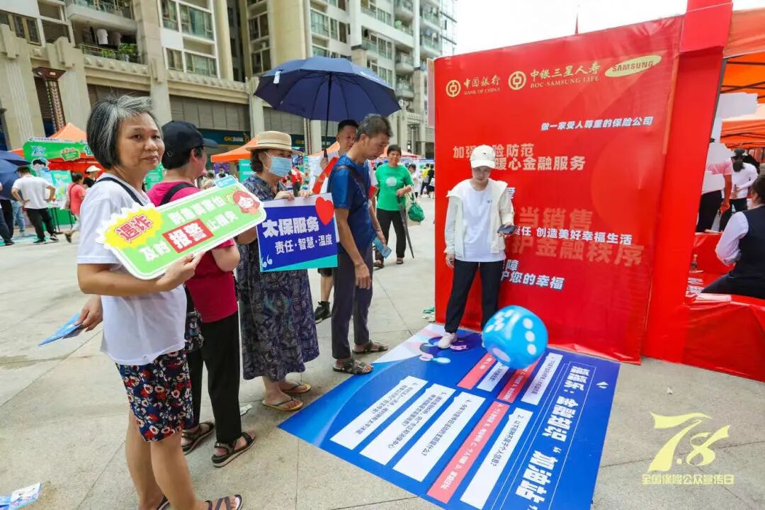 为深入普及保险知识、增强群众保险意识、提升保险行业品牌形象,助推保险业高质量发展再上新台阶,7月8日上午,在广东金融监管局指导下,广东省保险行业协会组织广东银行业保险业在天河区城建大厦广场、猎德晟府广场开展“7·8全国保险公众宣传日”大型户外主题宣传活动,广大市民群众热情参与,将 “7·8全国保险公众宣传日”活动推向新高潮。 本次户外主题宣传活动以“保险,让每一步前行更有底气”为主题,本次宣传活动由中国人寿广东省分公司、平安财险广东分公司承办,30家省级银行保险机构参与宣传,广东金融监管局消保处负责人到现场督导。在活动现场,各家银行保险机构搭建主题鲜明的宣传展位,通过派发保险知识宣传折页、开展保险业务咨询、设置保险知识普及游戏、派发宣传小礼品等方式,为广大市民群众开展金融知识普及宣传,倾听回应消费者诉求,开展公益服务,塑造广东银行业保险业良好社会形象。 中国人寿广东省分公司承办的城建大厦广场宣传点,紧抓商圈往来人流多元特点,面向“一老一少一新”重点人群针对性开展“护老爱幼助新”知识普及和关爱行动。聚焦老年人群体需要,农业银行用心准备“青绿消保课堂”,人保财险精心安排“铲除金融毒瘤”互动,大家人寿贴心设立“健康驿站”,为老年人提供沉浸式反诈体验和公益健康服务。聚焦青少年群体特点,中国人寿夏日运动派对,平安财险花式打卡拍照,新华人寿“釜底抽薪锤风险”叠叠乐,太保财险和浦发银行冰壶运动体验,建设银行“知识垂钓”,广州农商行“好彩福利站”吸引青少年参与,引导青少年提升金融素养,增强金融安全意识。聚焦新市民群体需求,招商银行倾心打造“绿野仙踪”展位,广州银行暖心提供夏日降温大礼包,工商银行出动机器人“小宇宙”,泰康人寿“金融知识加油站”,平安人寿“金融知识我来答”,为往来户外工作者和新市民群体送去视觉和触觉的双重夏日清凉体验,在舒适环境中学习金融知识。 在平安集团驻广州地区财险、寿险、健康险、养老险、银行各专业公司承办的猎德晟府广场宣传点,各金融机构展位颇具特色。平安大本营将展位打造成“金融消保驿站”,为参与消费者开设“沉浸式”金融保险学习课堂,并提供裸眼视力测量、电脑验光检查等特色健康义诊服务;中国太保寿险、产险、健康险广东分公司依托智能中医脉诊、心脏健康评测等AI健康评估设备,为前来展台咨询的市民进行健康检测;人保财险设置“7·8保险知识升升升”“立行立走防诈骗”寓教于乐的互动游戏;太平财险通过漫画形式讲述保险知识;太平人寿展位以“公交站台”的概念形式呈现,巧妙地将保险金融知识融入公交站台,中银集团将国潮新中式与金融宣传IP相结合,大地财险设置“代言集赞迎好礼”互动环节,中融人寿以“刮刮乐”作为有趣的答题卡,中华联合现场解读保险相关政策、普及金融保险知识,交通银行针对小朋友制作的“金融知识趣味弹弹棋”,中国人寿以“消保巴士”为主题打造特色活动,助力提升金融素养和防诈意识。考虑到活动当天天气炎热,邮储银行还贴心准备清凉饮品,中英人寿为参与者赠送凉茶,为消费者营造舒适的活动区域。 下一步,广东省保险行业协会将继续丰富形式,创新开展有氛围、有特色、有吸引力的“7·8全国保险公众宣传日”活动,积极传播广东保险业发展成就,增进人民群众获得感和幸福感。 户外活动一日保险