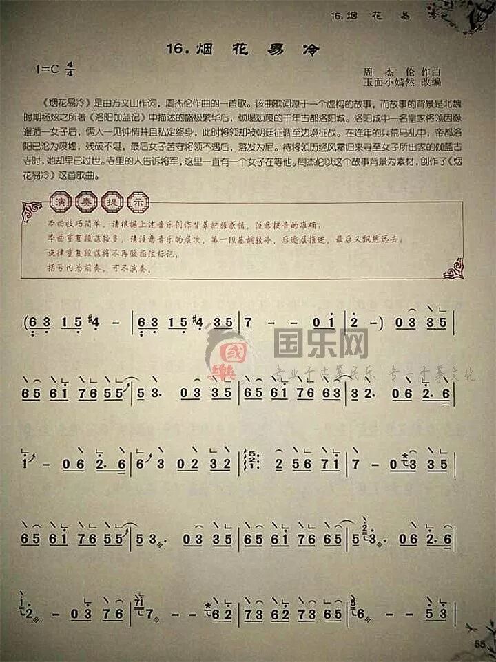 古筝课学古筝——就关注古筝课 玉面小嫣然古筝关注 玉面小嫣然古筝《烟花易冷》是由方文山作词,黄雨勋编曲,周杰伦作曲并演唱的歌曲,收录在周杰伦2010年5月18日发行的专辑《跨时代》中 。2011年,该曲获得2010年度北京流行音乐典礼“年度金曲奖” 。《烟花易冷》这首歌歌词古典优美,意境深远。该曲以北魏洛阳城为背景,周杰伦古典意味浓郁,旋律优美动听,历史感深邃。这首歌唱出了对历史沧桑、兴衰无常的追问,让人听着听着不经眼前浮现出一幅幅古老的画面:佛塔林立,转瞬成空;刀光剑影,沧海桑田。而这一切,就曾经发生在人们每天生活的洛阳。既为它过去的衰败而惆怅,更为它现今的繁荣而自豪。微信聊天对话框回复:下列名称;即可自动 获得曲谱哦,如没有收到自动回复,则暂无,您可二次发送,编辑:”歌名”加”没有谱” 如:云水禅心没有谱 后台查看到会尽快补上。注释:回复歌名,不需要外加别的字。 如下:高山流水 | 渔舟唱晚 | 战台风 | 出水莲 | 贝加尔湖畔 | 将军令 | 橄榄树 | 天空之城 | 广陵散 | 牧羊曲 | 月满西楼 | 青花瓷 | 菊花台 | 凉凉 | 女儿情 | 风吹麦浪 | 汉宫秋月 | 琵琶语 | 倩女幽魂 | 卷珠帘 | 在水一方 | 小草 | 将进酒 | 虞美人 | 芙蓉雨 | 雨蝶 | 沧海一声笑 | 浏阳河 | 春江花月夜 | 爱江山更爱美人 | 妆台秋思 | 等...... 歌曲 古筝课说明:本平台意在分享古筝知识,如有侵权请联系,我们会尽快删除。???? 转载请说明出处 内容投诉内容投诉九幽软件 » 玉面小嫣然古筝(玉面小嫣然古筝名曲欣赏)