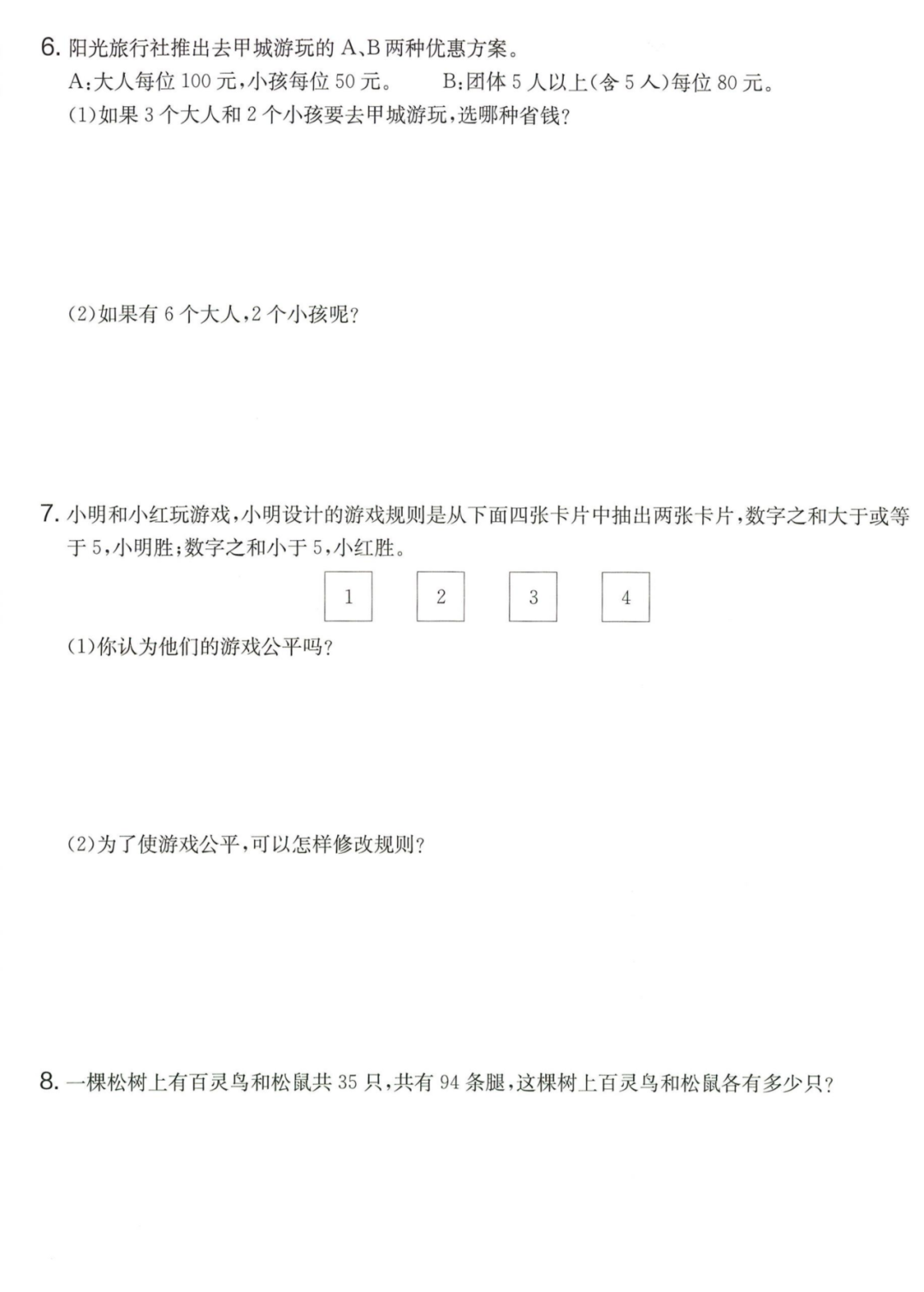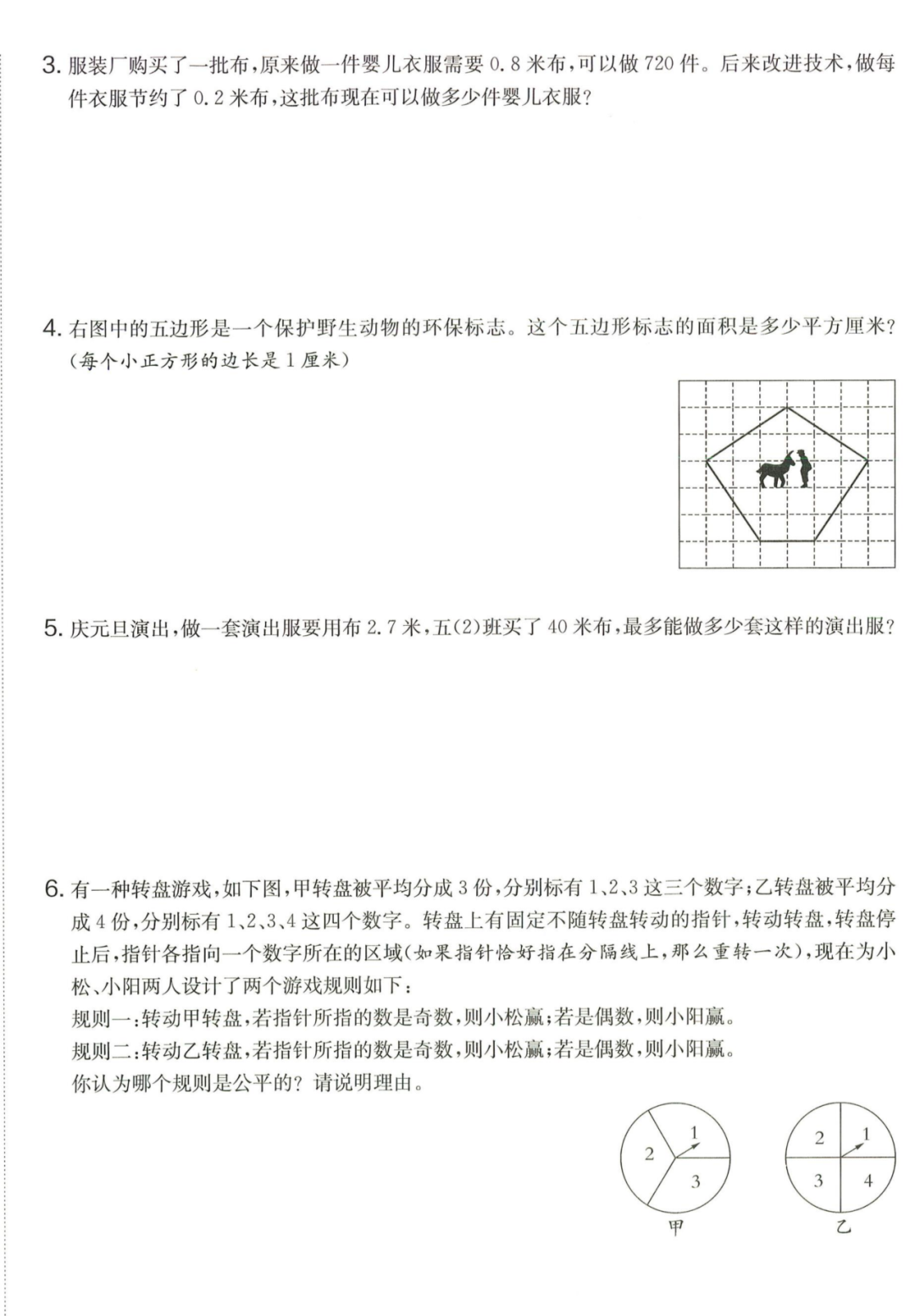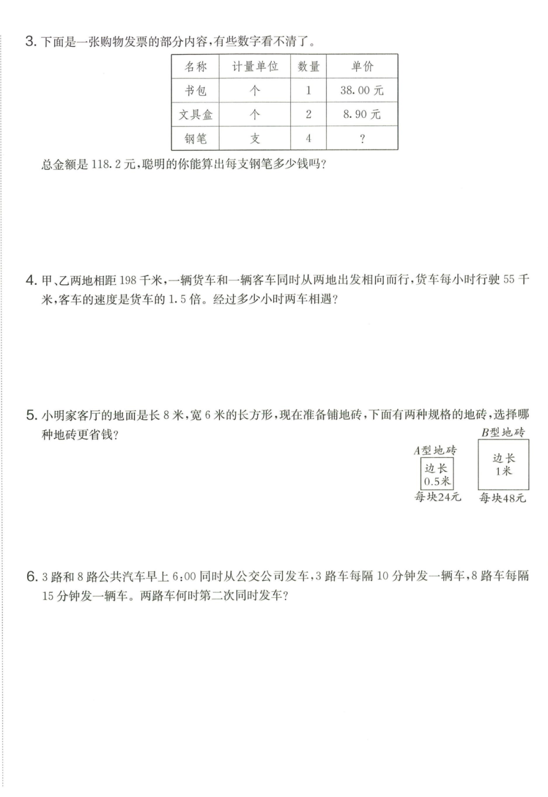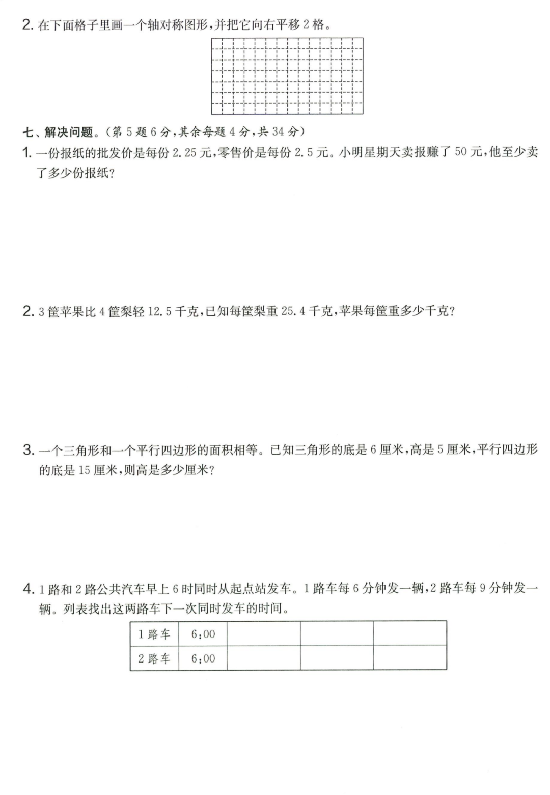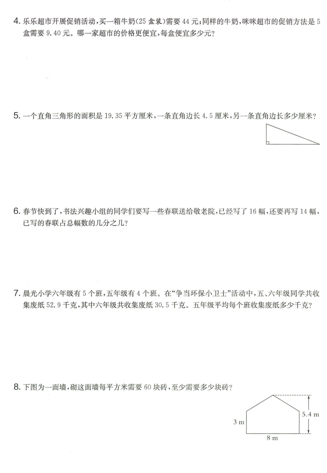 王老师最新整理了小学五年级上册数学期末试卷8套(含答案),附期末必考知识点! 知识点 小数乘法计算法则: 1.先按照整数乘法算出积,再点小数点; 点小数点时,看因数中一共有几位小数,就从积的右起数出几位,点上小数点。 2.一个乘法算式中,一个数(0除外)乘大于1的数,积比原来的数大。如:3×1.2>3一个数(0除外)乘小于1的数,积比原来的数小。如:3×0.8<3 3.积的变化规律:一个因数不变,另一个因数乘或除以几(0除外),积也乘或除以几。 小数除法计算法则: 1.先移动除数的小数点,使它变成整数; 除数的小数点向右移动几位,被除数的小数点也向右移动几位(位数不够的,在被除数的末尾用0补足); 然后按除数是整数的小数除法进行计算。 3.一个除法算式中,当除数小于1时,商比被除数大; 当除数大于1时,商比被除数小。 4.商的变化规律: 被除数与除数同时扩大或者缩小相同的倍数,商不变。 除数不变,被除数乘或除以几(0除外),商也乘或除以几。 被除数不变,除数扩大,商反而缩小;除数缩小,商反而扩大。 5.循环小数一定是无限小数;无限小数不一定是循环小数;有限小数一定不是循环小数。 运算定律: 加法交换律 a+b=b+a 加法结合律 (a+b)+c=a+(b+c) 乘法交换律 a×b=b×a或ab=ba或a·b=b·a 乘法结合律 (a×b)×c=a×(b×c) 或(ab)c=a (bc) 或(a·b )·c=a· (b·c) 乘法分配律 (a+b)×c=a×c+b×c 或(a+b)×c=ac+bc 或(a+b)·c=a·c+b·c 连减 a-b-c 五年级试卷=a-(b+c) 连除 a÷b÷c=a÷(b×c) 正方形的边长用a表示,面积用S表示,周长用C表示,则: 正方形的面积=边长×边长 S= a×a= a2 正方形的周长=边长×4 C= a×4=4 a 长方形的长用a表示,宽用b表示,面积用S表示,周长用C表示,则: 长方形的面积=长×宽 S= a×b = ab 长方形的周长=(长+宽)×2 C=(a+b)×2 路程用s表示,速度用表示v表示,时间用t表示,则: 路程=速度×时间 s=vt 速度=路程÷时间 v=s÷t 时间=路程÷速度 t=s÷v 用a表示商品的单价,x表示数量,c表示总价,则: 总价=单价×数量 c=ax 单价=总价÷数量 a=c÷x 数量=总价÷单价 x=c÷a 用a表示工作效率,用t表示工作时间,用c表示工作总量,则: 工作总量=工作效率×工作时间 c=at 工作效率=工作总量÷工作时间 a=c÷t 工作时间=工作总量÷工作效率 t=c÷a 多边形的面积: 平行四边形的面积=底×高 三角形的面积=底×高÷2 梯形的面积=(上底+下底)×高÷2 植树问题: 两端都不栽 棵树=总长÷间距—1 只栽一端(封闭图形植树) 棵树=总长÷间距 两端都栽 棵树=总长÷间距+1 1、单价、数量和总价 单价×数量=总价 总价÷单价=数量 总价÷数量=单价 2、路程、速度和时间 速度×时间=路程 路程÷速度=时间 路程÷时间=速度 3、工作总量、工作时间和工作效率 工作总量=工作效率×工作时间 工作时间=工作总量÷工作效率 工作效率=工作总量÷工作时间 4、总数和份数 每份数×份数=总数 总数÷每份数=份数 总数÷份数=每份数 5、生活中常用的单位: 质量: 1吨=1000千克;1千克=1000克 长度: 1千米=1000米 1分米=10厘米 1厘米=10毫米 1分米=100毫米 1米=10分米=100厘米=1000毫米 面积: 1平方米= 100平方分米 1平方分米=100平方厘米 1平方千米=100公顷 1公顷=10000平方米 人民币: 1元=10角 1角=10分 1元=100分 期末试卷 01 期末试卷 02 期末试卷 03 期末试卷 04 期末试卷 05 期末试卷 06 期末试卷 07 期末试卷 08 参 考 答 案