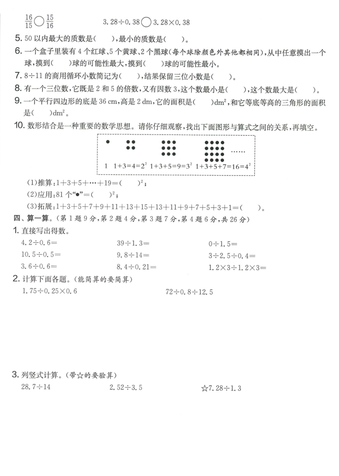 2.一个除法算式中,被除数>除数,则商>1;被除数<除数,则商<1。