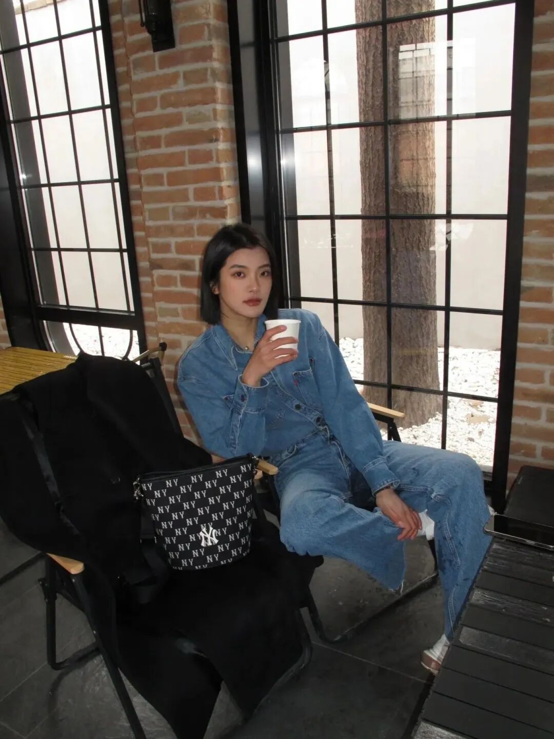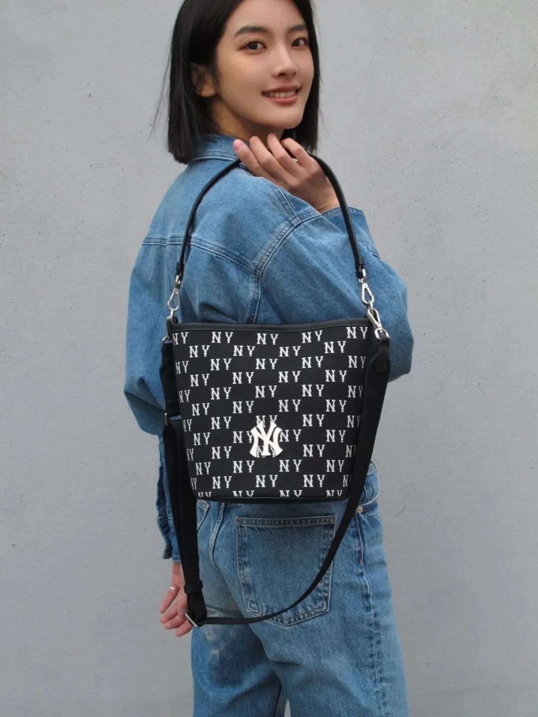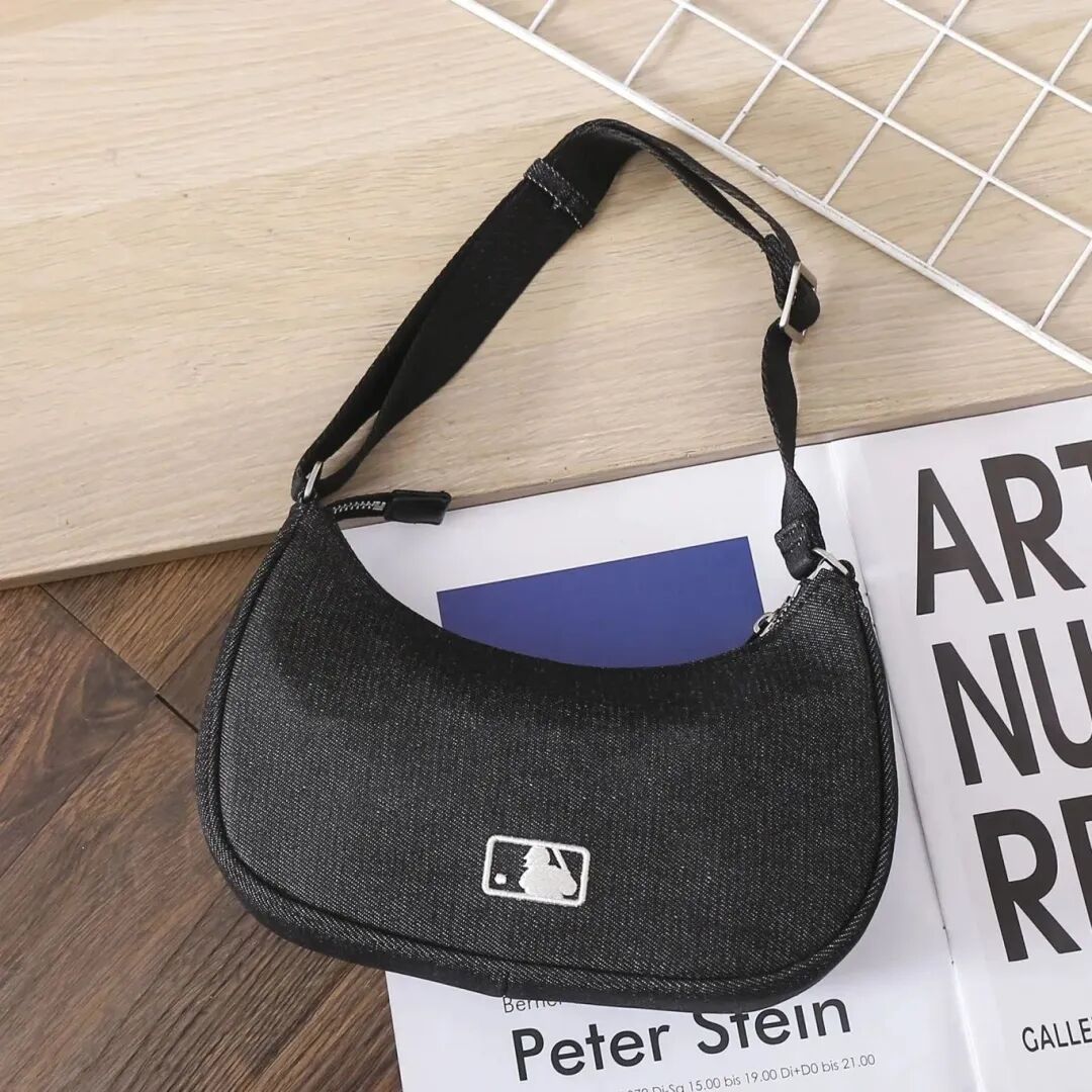 这款腋下包是深色牛仔材质,挺括有型,不是软塌塌的那种。包带可调节长短,可手拎可腋下,适合各种身高。