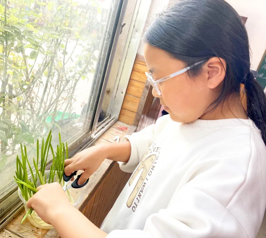 学生的观察记录 观察学生:梁欣悦 11月4日 DAY 01—— 首先准备一头完好无损的大蒜,需要准备一个盆子当作大蒜的生长基地,小心翼翼地把大蒜一瓣一瓣的剥开,蒜头朝上整齐的排列在盘子中,最后倒入适量的水。保持环境的适宜湿度,静静的等待它们发芽。 11月5日 DAY 02 经过了一夜的浸泡,大蒜一个个的都变得饱满,仔细的观察,发现大蒜的顶端开始变绿,这是发芽的迹象,并且底部也长出了很多的小根须,这些小根须细细的。大约2-3毫米,期待它们茁壮成长。 11月6日 ——DAY 03—— 第三天的时候,发现几乎所有的大蒜都冒出来浅渌色的小嫩芽,形状有点像小象牙。看来,有许多大蒜的小嫩芽已经迫不及待的想要看到这个世界,但是有几只就比较调皮,斜出了身子,想要离开集体去“勇闯天涯”做一个自由的“蒜”。它们的牙有的粗,有的细,有的长,有的短。 11月7日 DAY 04 期 待 接 下 来 的 成 长 正 在 快 速 生 长 第 四 天 的 蒜 苗 们 第四天,蒜苗们好像在进行一场生长比赛,各不相让,有长得快的,有长的慢的,最长的大约有2厘米。颜色比昨天更绿了,底部的根须也越长越密,这些根须努力的吸收着养分和水分,为大蒜的生长提供着帮助。期待大蒜们接下来的成长。 11月8日 DAY 05—— 蒜苗长高了许多,蒜苗们长出了一片片碧绿的“叶子”,直挺挺的立在盆子中,皮都胀开了,露出来淡黄色的身体,还有一层白色的保护皮,继续观察,期待大蒜们的成长。 11月10日 DAY 07 蒜苗的叶子也变得更加宽阔了一些,从原来的细长的形状变得更加宽大厚实,颜色由嫩绿色变成了深绿色,同时,大蒜的根部也变得更加粗壮。凑近一闻,闻到一股淡淡的蒜香味。继续观察,期待蒜苗们快快成熟。 11月12日 ——DAY 09—— 九天过去了,蒜芽已经长得更加成熟,大蒜的蒜叶变得更加翠绿,而且长度有所增加,已经高出盆子有一尺多高了,不仅能装饰环境,而且还可以用它来做菜呢! 通过这次水培实验,让我们真实地感受到了生命的奇妙。我们看到了一个微小的大蒜种子如何通过自身的力量和外部环境的支持,发展成为一颗生机勃勃的大蒜。也让我们我懂得了“一分耕耘,一分收获”的道理。通过这次观察,让我明白了无论做什么事情,只要我们有耐心,用心去做,就会收获意外的惊喜! 我校通过农耕体验田活动旨在提高孩子们对农作物种植的了解和掌握,通过实践操作,目的是为了培养孩子们的动手能力、观察能力、社会实践能力和创新能力,同时促进绿色生态农业的发展。学生通过参与农作物的整个生长过程,培养他们爱惜粮食,团队合作的意识。 关注树人 我们下期见! 策划:生命成长中心 观察学生:梁欣悦 编辑:赵永利 审核:李雪