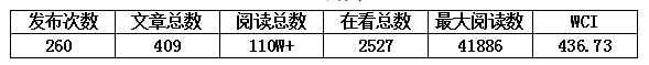 7月份,郑州市高中&中职类参加评价的微信公众号共44个,总发布次数为260次,文章总数为409篇,与上月相比,该两项数据均有不同程度的下滑。但值得注意的是,虽文章发布数量有所降低,但本月的阅读总数和最大阅读数均有所提高,分别为110W+和41886,故而带动本月的WCI指数从上月的416.48升至436.73,说明虽文章数量有所不足,但部分学校的推文质量水平较高,值得肯定。期待各校账号继续专注于推文质量和数量,加强优质内容的输出,总结成功经验,不断带动其他各项指标的提升。