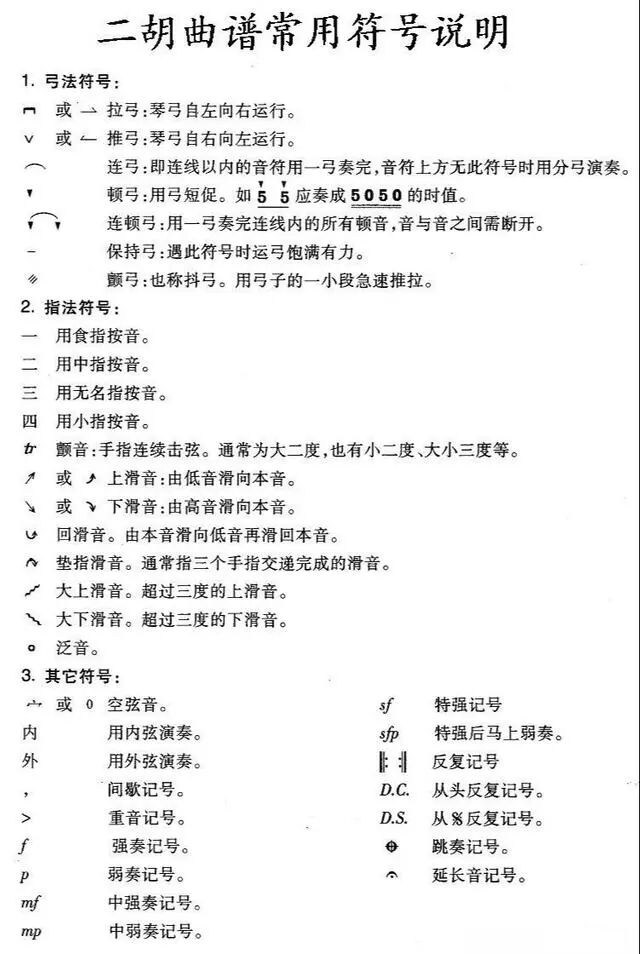 常见的二胡谱子符号标明含义