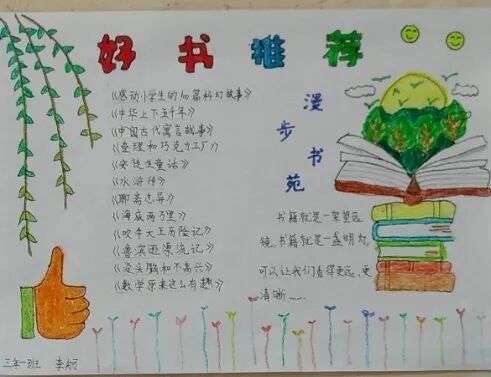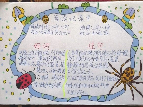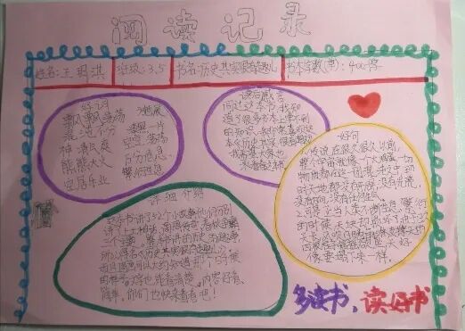 三年级的学生在老师们的引导下,在阅读的过程中已经初步养成了“不动笔墨不读书”的良好习惯。在四月份悦读阅美活动中,孩子们大显身手,读书成果多姿多彩,制作的悦读记录卡不但精致,而且内容丰富。