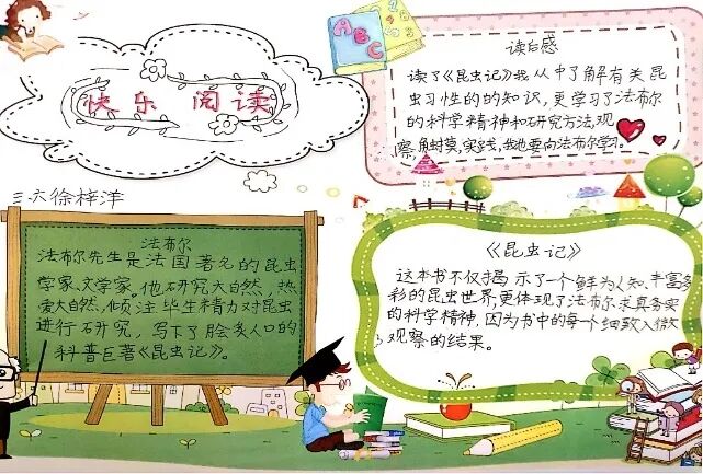 在形式上,孩子们融合美术元素,制作了书签、连环画、手抄报、思维导图、阅读表格和悦读记录卡等。在内容上,涉及课内外寓言故事、中国传统节日、好书推荐、读后感等。更令人惊奇的是,孩子们还制作了不同内容的系列悦读记录卡,有中国历史、《小王子》、云游故宫等。孩子们徜徉书海,真是创意无限啊!