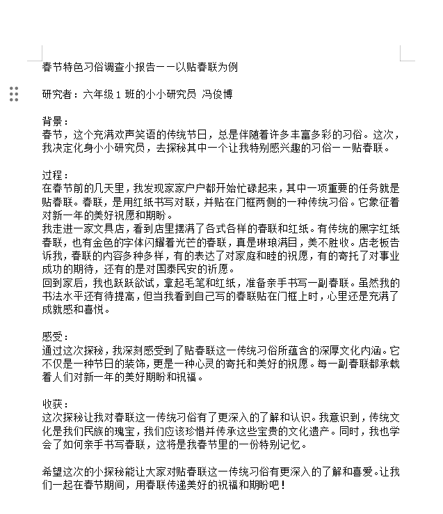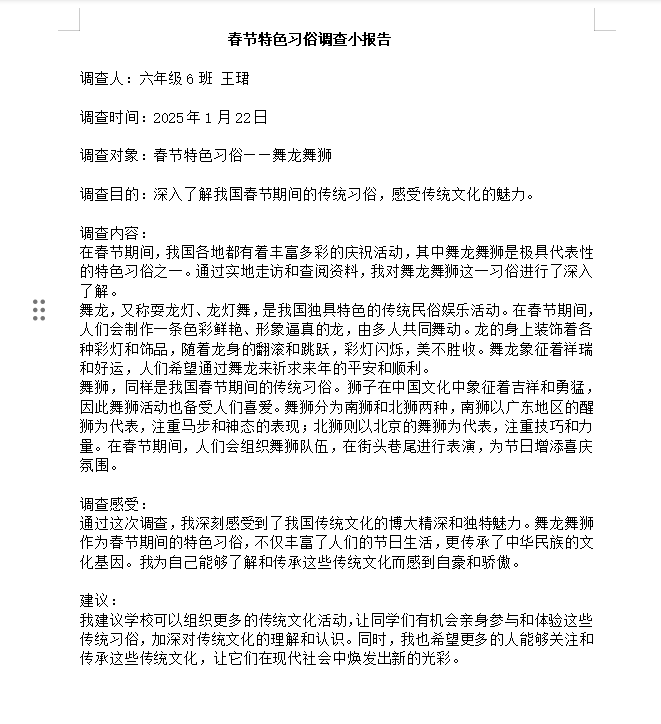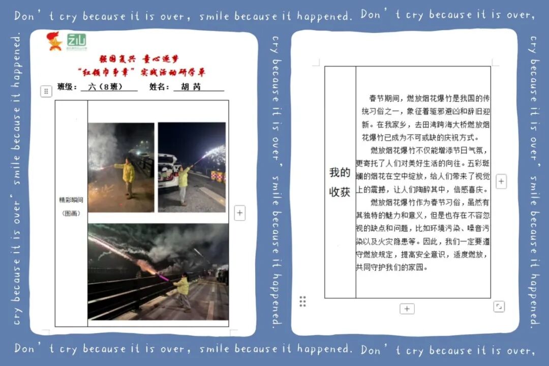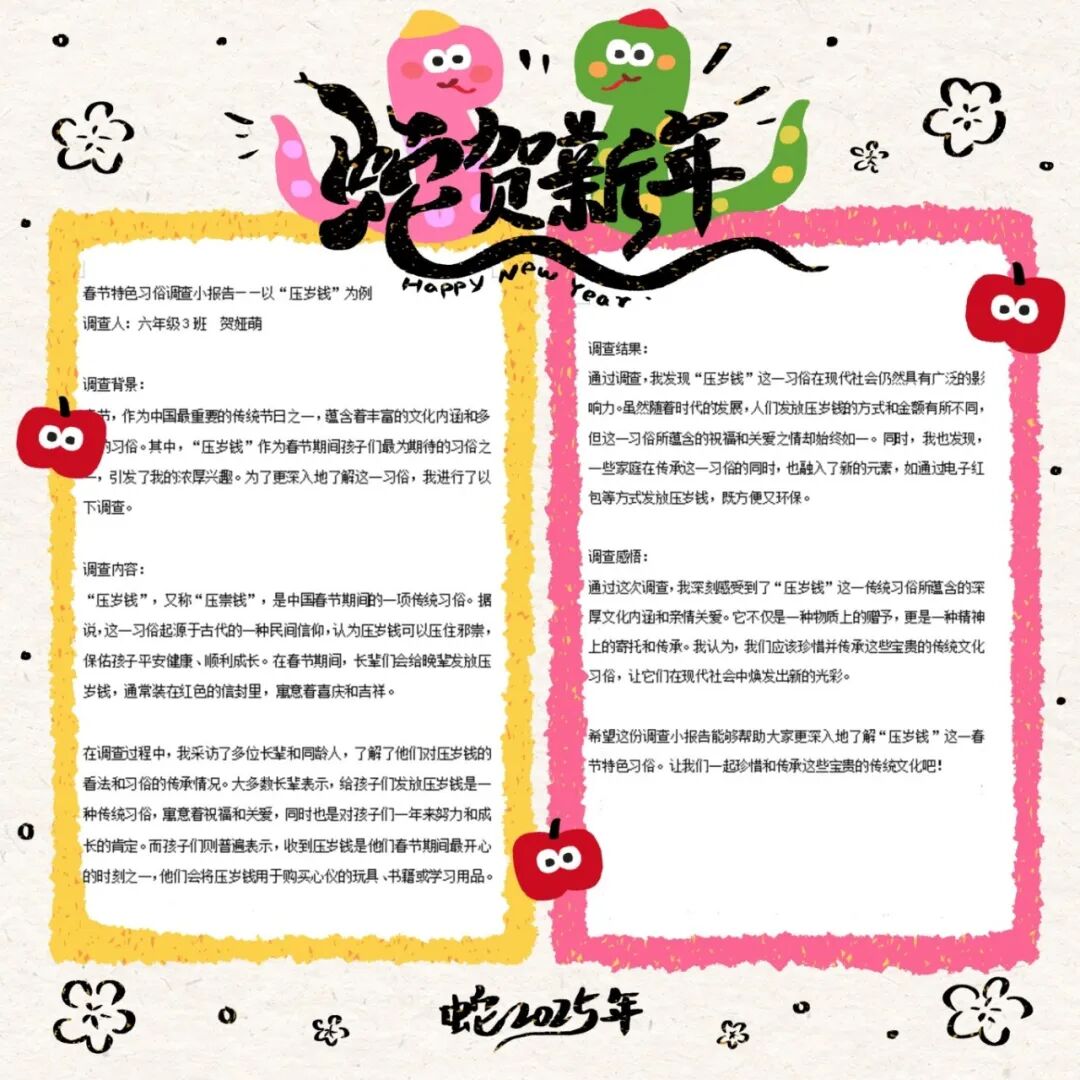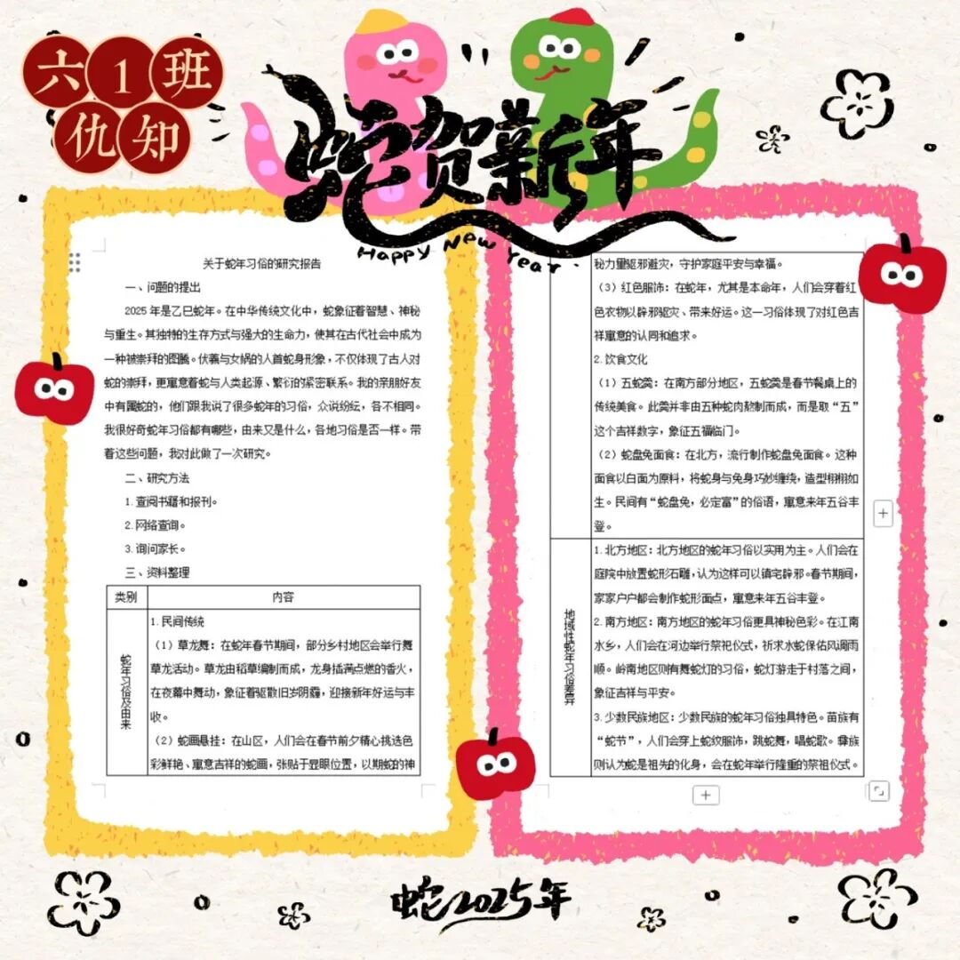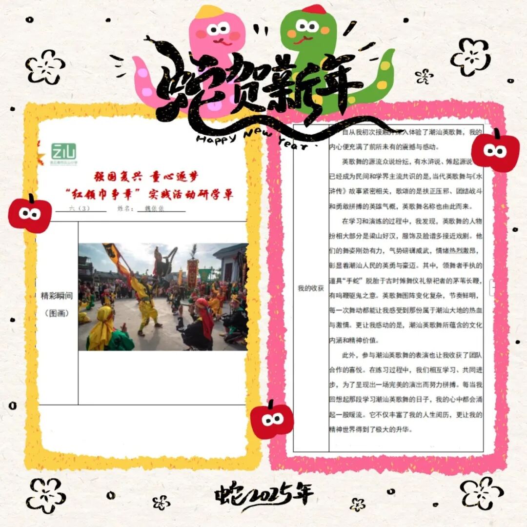 随着冬日暖阳的温柔照耀,寒假的乐章缓缓奏响。云山小学教育集团的传承小使者【传承章】争章实践活动也在热烈氛围中拉开帷幕!快来瞧瞧我们的小小传承者们是如何用他们那颗热忱的心,编织出一幕幕精彩绝伦的传统文化时刻吧! 萌蛇绘生肖,童趣传文化 瞧!一年级的小朋友们用五彩斑斓的画笔,描绘出了活灵活现的十二生肖。每一幅作品都充满了童真童趣,让人仿佛看到了传统文化在孩子们心中的萌芽。 二年级的小朋友们则变身手工艺人,剪出了精美的窗花,画出了威风凛凛的门神,为即将到来的新春佳节增添了浓厚的节日氛围。他们的作品不仅展现了高超的手工技艺,更传递了对传统文化的热爱与敬仰。 三年级的书法小高手们,挥毫泼墨,写下了一幅幅寓意吉祥的对联。他们的书法作品力透纸背,彰显了对传统文化的深厚底蕴,同时也为亲朋好友送去了新年的美好祝福。 四年级的少先队员们化身为文化小讲师,他们绘声绘色地讲述了春节的特色习俗,如贴对联、放鞭炮、舞蛇表演等,让同学们在轻松愉快的氛围中感受到了传统文化的魅力。 五年级的小伙伴们通过绘画作品,生动展现了二十四节气的文化魅力。他们的作品不仅色彩丰富,更蕴含了对自然和传统文化的敬畏之心,让人仿佛看到了四季更迭、万物生长的生动景象。 六年级的调研小分队则对春节的特色年俗进行了深入探究。他们通过查阅资料、实地走访等方式,了解并记录了这些传统年俗的历史渊源和文化内涵。他们的调查报告不仅条理清晰,更附上了生动的图片,让人仿佛置身于热闹的春节氛围中,感受到了传统文化的深厚底蕴和独特魅力。 此次【传承章】争章实践活动,不仅让小传承者们充分感受到了传统文化的魅力,更激发了他们对传统文化的热爱与传承之心。相信在未来的日子里,他们会让优秀的传统文化之花在华夏大地上绽放得更加绚丽! 供稿:学生处 编辑:颜闯 审核:马一宁![]()