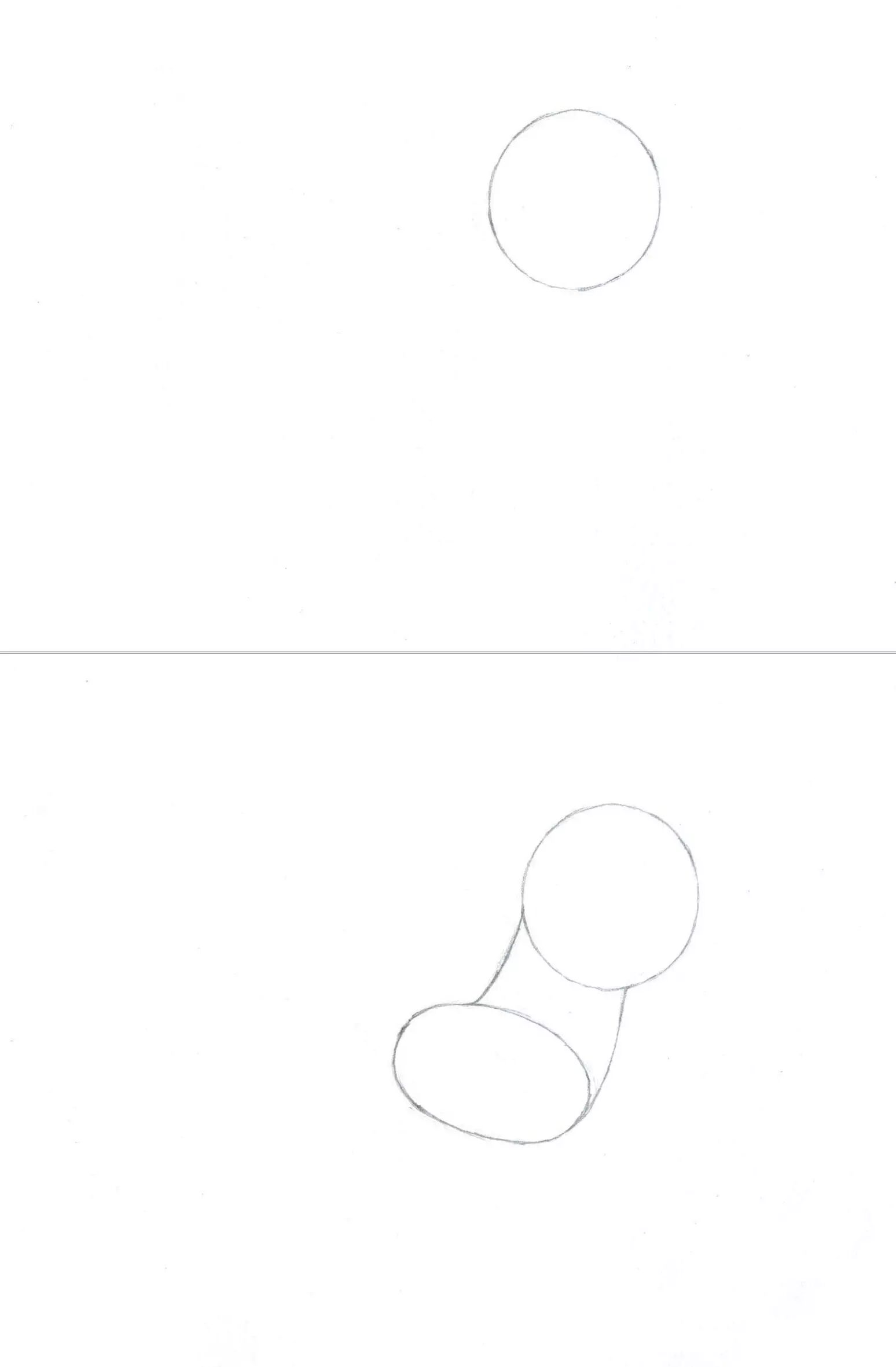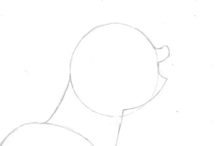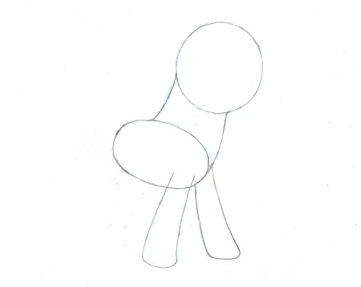 1,先画画柔柔一个圆滚滚的圆形作为小马的头,在左下方画出一个椭圆形作为小马的身体,画出脖子将它们连接在一起,注意脖子要稍微弯曲一点哦,因为柔柔的头是抬起来的,脖子也要跟着弯曲才对~
