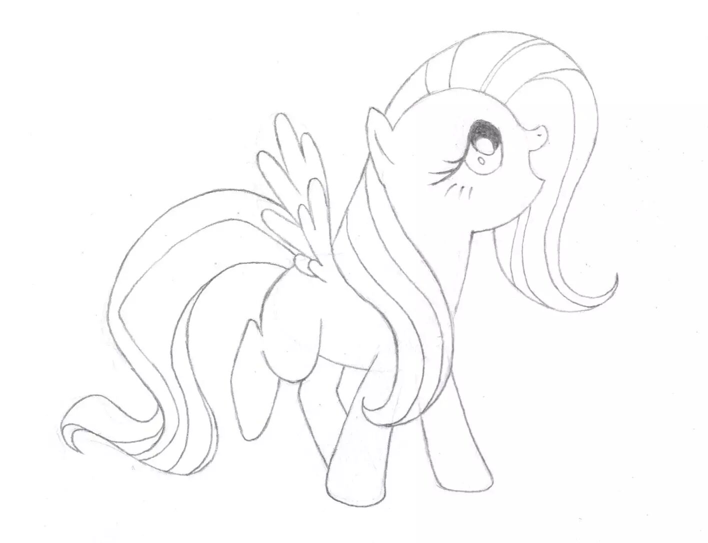 10,用画鬃毛的方法,我们将柔柔的尾巴画出来。这样柔柔的线稿就画完了。