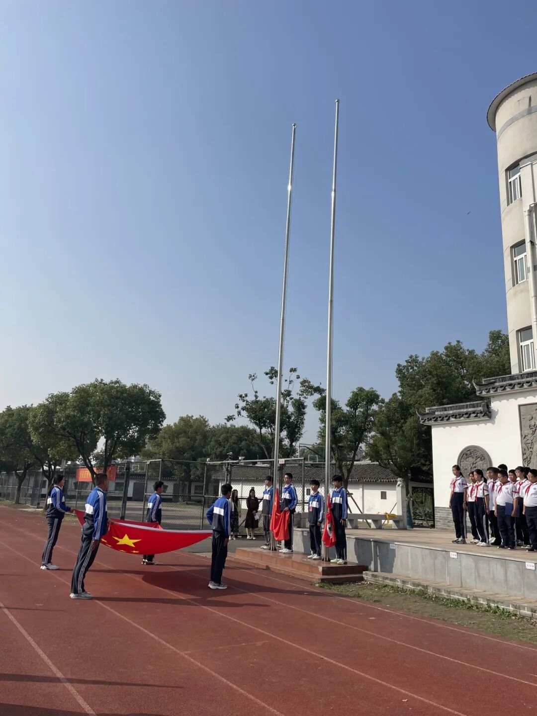 10月16日上午,广陈中学全体师生在操场举行第8周升旗仪式。升旗仪式由702班班长吴佳怡同学主持。 吴佳怡 四位帅气的护旗手举着五星红旗步伐整齐地向司令台走来。全师师生神情严肃,注视五星红旗缓缓升旗。国歌声中,少先队员行队礼,其他同志行注目礼。 首先,俞贤辉同学进行了《扬长征精神,练强健体魄》为主题的国旗下讲话。 国旗下讲话 俞贤辉 随后,双胞胎兄弟黄天麒和黄天麟,作为学生代表发言,讲述了学校“每月两万五,重走长征路”活动对自己的影响。他们声情并茂地讲述到每当遇到困难时,一想到红军长征中吃的苦,他们就有了克服自己小困难的勇气。是长征精神,帮他们改掉了学习和生活中的明显缺点。 黄天麒和黄天麟 接着,702班为全校师生带来了他们为迎接广中校运会特地改编的《拍手歌 迎校运》 迎校运 拍手歌 金秋送爽迎风来, 广陈中学动起来, 七零二班迎校运。 拍手歌,拍起来。 你拍一,我拍一,今年我们上初一。 你拍二,我拍二,校园处处有健儿。 你拍三,我拍三,运动让我换新颜。 你拍四,我拍四,顽强拼搏创奇迹。 你拍五,我拍五,超跃自我就是酷。 你拍六,我拍六,强身健体多朋友。 你拍七,我拍七,文明卫生记心里。 你拍八,我拍八,德智体美人人夸。 你拍九,我拍九,公平竞争最长久。 你拍十,我拍十,长风破浪会有时。 拍手歌,拍起来, 嘹亮歌声迎校运。 《拍手歌 迎校运》 班级风采展示完毕后,班主任朱老师向同学们阐明了练习跑步的重要意义。善于跑步是遇到险情时的重要技能。会跑的人往往最先脱离险情。会跑不仅是指跑得快,还指跑得久。跑得久需要通过练习来练出耐力。而这种耐力又会转化为我们内在的韧劲。有了这种韧劲,我们的人生遇到低谷时,就有了东山再起的精神力量。 最后,政教处毛婧芸主任宣读上周优秀班级和美丽班级名单,分别颁发流动红旗和奖状。 撰稿|朱昕艳 摄影|行露摄影社 制作|黄思妍 审稿|周庆东 监制|冯建国 微信ID:phsgczx![]()