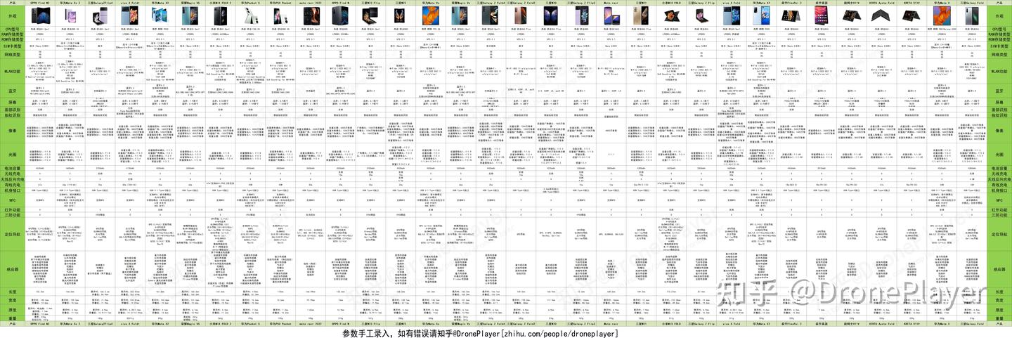 哪款折叠屏手机值得买?折叠屏手机排名前十是?哪些折叠屏手机性价比高? 这篇有关"折叠屏手机"的文章正在持续收录最新的折叠屏幕手机(包括小米、三星、OPPO、华为、Vivo 、荣耀等品牌)。 [折叠屏手机参数对比图] 这副折叠屏手机参数对比图,可以让你对当前市面上的所有折叠屏手机有一个清晰全局的了解。 这几天逛京东朋友都建议领个红包,小额当零花,大额华为三折手机带回家~ 本文持续更新,建议双击点赞收藏 & 建议关注 更新有通知呦 2025年预计发布的折叠屏手机有: 当这些手机发布时,将在这篇文章中更新,建议提前点赞收藏哦 Mate XT是全球首款三折叠屏手机 华为Mate XT采用海思麒麟9010处理器,这款处理器安兔兔的跑分在97万左右,Geekbench 6 跑分单核1447分、多核4765分)[1](后续补充更详细数据) 该机型拥有创新性的三折屏设计,分别为6.4英寸OLED单屏、7.9英寸双折屏和10.2英寸三折屏(屏幕完全展开与iPad 10.2英寸版本一样大),屏幕分辨率为2232*1008、2232*2048和2232*3184,支持90Hz LTPO刷新率和240Hz触控采样率,1440Hz高频PWM调光。机身重306g,厚度为单屏12.8mm,双折屏7.45mm,三折屏仅为3.6mm厚。 在影像方面,Mate XT配备5000万像素主摄,支持OIS光学防抖和可变光圈,1200万像素超广角和1200万像素潜望式长焦,提供5.5倍光学变焦。前置摄像头为800万像素,适合自拍和视频通话。5600mAh三电芯电池支持66W有线快充和50W无线快充。 Mate XT还支持天通卫星通话、侧边指纹解锁、红外、NFC和气压计等功能,搭载HarmonyOS 4.2系统,进一步提升了AI智能化体验。全新的三折叠屏设计和强大的影像系统,让Mate XT成为了高端折叠屏手机中的佼佼者,非常适合追求极致科技感和全方位功能体验的用户。 最大的遗憾是在处理器和电池容量上没有明显的突出。 全新发布的小米 MIX Fold 4 MIX Fold 4采用高通骁龙8 Gen 3处理器([2]安兔兔跑分 200万+,GeekBench 6跑分 单核:2042 多核:6255 GPU:15403 ) 《王者荣耀》平均帧率 119.8 帧,温度 42.2℃,《原神》平均帧率 42 帧,6 分钟后帧率缓降,温度 47.3℃,《星穹铁道》平均帧率 44.9 帧,温度 46.7℃ 全碳架构仅重226g,厚度9.47mm,展开厚4.59mm,铰链支持45-135°大范围悬停,主屏为2K 120Hz 7.3英寸,相机为徕卡全焦段四摄,包括5000万像素主摄、1200万像素超广角镜头、5000万像素浮动长焦镜头和115mm超长焦镜头,4500mAh电池,支持67W快充,IPX8级防水 系统支持AI文本扩写、照片/视频自动生成、消除路人、小爱实时翻译、录音转文字等功能。 小米MIX Fold 4在轻薄性、影像、性能、续航等方面均有出色表现,是一款名副其实的全能轻薄折叠屏新旗舰。如果你是追求极致轻薄和全能体验的用户,那么小米MIX Fold 4将是绝佳选择。 小米第一款小屏竖折叠屏手机 MIX Flip MIX Flip搭载骁龙8 Gen 3处理器([3]Geekbench跑分:单核2124分,多核6591分;安兔兔跑分:189万)同时搭配LPDDR5X内存、UFS 4.0存储,《王者荣耀》和《原神》都可满帧运行1小时+。 采用前后全等深微曲设计,手感出色,展开后薄至7.6mm,轻192g,支持45~120°大范围自由悬停,外屏为4.01英寸+6.86英寸2K 120Hz 内屏,相机为5000万主摄 + 5000万像素长焦,电池4780mAh。 总的来说,小米MIX Flip 是一款非常出色的折叠手机。它拥有出色的外观设计、优秀的屏幕素质、强劲的性能表现以及丰富的折叠屏特色体验。如果你是小折叠手机的爱好者,小米MIX Flip 绝对值得考虑。 荣耀Magic V3采用高通骁龙8 Gen 3处理器([2]安兔兔跑分 159万+,GeekBench 6跑分 单核:2051 多核:5643 ) 王者荣耀平均45.6帧(游戏4分钟后帧率缓降),最高温度47℃,原神平均51.1帧(游戏7分钟后帧率开始下降),温度45.5℃。 荣耀Magic V3采用了极致轻薄设计,重量约为230克,展开厚度4.4mm,合起厚度9.3mm,支持45-135°范围自由悬停,外屏为6.43英寸+内屏7.92英寸2.5K 120Hz。相机5000万像素主摄+5000万像素潜望长焦(3.5倍光学变焦,100倍数字变焦),4000万像素超广角镜头(白天成像质量高,色彩还原度好,夜间成像稍有过曝,但整体表现优秀)。 5150mAh电池,支持66W有线快充和50W无线充电,充电速度快,续航时间长,支持卫星通信。 荣耀Magic V3在设计、屏幕、相机性能、电池续航和系统功能方面表现出色,特别是其极致轻薄设计和护眼功能,适合商务用户和对轻薄手机有需求的消费者。然而,在软件优化和高负载游戏体验方面仍有提升空间。综合来看,值得考虑。 ...之前的更新放到了文章末尾。 大部分品牌都已发布横折和纵折的折叠屏手机,目前仅有小米和荣耀还未发布纵向折叠屏手机。 追求高性能的折叠屏手机,建议选择骁龙 8 Gen 2、天玑9200处理器的折叠屏手机。而骁龙8+ Gen 1是性价比较高的一波手机,它们大部分比Gen 2折叠屏手机售价低很多。 删繁就简,根据自己的使用体验和各大排名,推荐几款最值得购买的折叠屏手机。 你还可以在[ 六、折叠屏手机推荐 ]中按照价位筛选适合自己的手机,2.可在评论区提出问题(附带:预算、用途)让我来为你解答。 最适合新手入门的折叠屏手机:Moto Razr 40 Moto Razr 40是目前折叠屏手机中唯一只用3000+的价格就可以体验到的一款竖折折叠屏手机! 虽然售价低,但MOTO并没有偷工减料。Razr 40的铰链采用了第四代星轨转轴,支持多角度悬停!闭合后屏幕与屏幕间严丝合缝,真是做工精良。 Razr 40 总重量只有188.6g,展开厚度仅有7.35mm,拿在手中既轻又薄,手感超级好。同时,这款手机的做工和颜值也体现了国际大厂的水准。除了这些,Moto Razr 