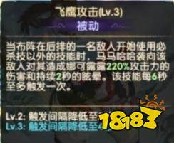 技能综合分析:被动飞鹰攻击是一个针对后排的控制突进类技能,比较针对法师以及辅助角色;神之轮舞的3连击合计630%的伤害再加上40%的吸血在刺客里已经是非常优秀的输出以及恢复技能了,更别提3连击带打断足以中断大部分后排的小技能了;