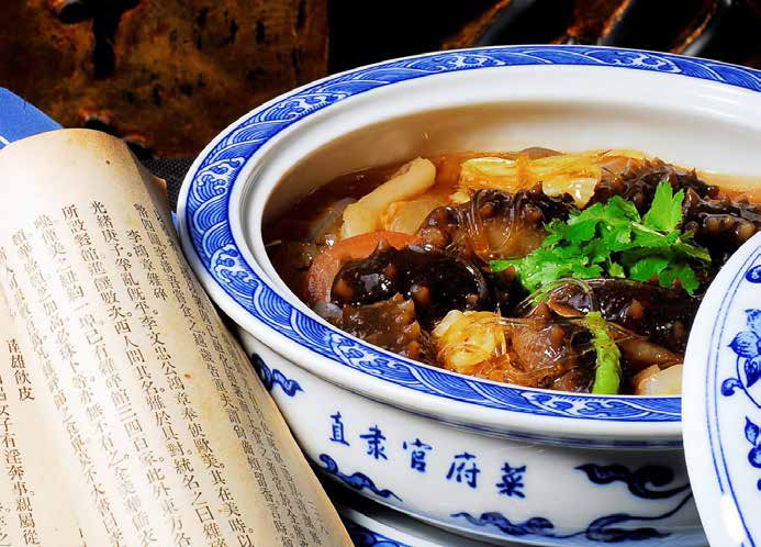 舌尖上的非遗美食 直隶官府菜 包罗万象 博大精深 每一座城 都有自己独特的“味道” 或古老厚重的历史沉淀 或摩登时尚的朝气蓬勃 那些历经岁月的味蕾经典 留存了一座城的文化和记忆 在保定 有一个远近闻名的菜系 ——直隶官府菜 直隶官府菜 它出身“高贵”,自带光环 它有几百年的历史 堪称中国官菜的“活化石” 它的技艺被评为 国家级非物质文化遗产 它多次参加有关餐饮博览会并获奖 并登上了2022年北京冬奥会的餐桌 “颜值” 直隶官府菜 色香味形 料器养 直隶官府菜 是明清直隶官府的特味之一 因起源于直隶官宦之家 故名“直隶官府菜” 它不仅注重口味 而且注重质感 做工精细 讲究汪油抱汁、明油亮芡 菜肴在鲜嫩、爽滑、醇厚 干香基础上 兼具多味,南北适宜 烹饪技法 有熘、烙、煎、烹、炒 炸、爆、烧、煨、焖、煸、熬 炝、炖、烘、焙、火烤等36种之多 尤以抓炒、侉炖、托蒸、油淋 酱爆等技法独具一格 刀工精细 有条、丝、丁、茸、片、末 块、段等30余种刀法 烹调用汤选材遵从 “无鸡不鲜,无鸭不香,无肘不黏”之道 有清汤和浓汤之分 又有头汤、二汤、套汤、坠汤之别 工于酱烧 采用本地槐茂面酱烹制的 酱爆鱼丁、酱汁瓦块鱼等名菜 呈现出暗红的金属色泽 入口滑润且有浓郁的酱香味 独树一帜 营养丰富 属中性咸香型 选料考究、注重口味 调味原料多使用保定本地的 槐茂面酱、望都辣椒、小磨芝麻油等 餐具外观精美 多为凝重内敛的青花瓷器 青花瓷以雅洁、深沉的蓝色 在洁白的胎釉上 粗细疏密的线条变化 描绘出绚丽的图案 华贵而大气,神韵雄壮浑厚 凝重而又不失秀丽 直隶官府菜的 “色、香、味、形” “料(原料考究)、器(器皿精美) 养(营养丰富)” 可谓是美食中的颜值扛把子 分分钟撩倒你的胃! “内涵” 直隶官府菜 舌尖非遗 直隶官府菜有着300多年的历史 具有深厚的文化内涵 2011年5月 直隶官府菜烹饪技艺获评 第三批国家级非物质文化遗产项目 逐渐形成的具有独特文化内涵的菜系 直隶官府菜的经典菜品有百余种 每道菜都积淀着保定的历史和文化 至今,民间还流传着 李鸿章烩菜、乾隆皇帝与鸡里蹦 方观承与荷包里脊 曾国藩与锅包肘子等故事 关于李鸿章烩菜 有这样一个轶事典故 1896年李鸿章出使欧美各国数月 天天西餐使其日渐消瘦 回到直隶总督府后 官厨根据保定府自古擅做的烩菜 改良加入了上等的海参、鱼翅等珍馐 为其制作了一道佳肴 这便是“李鸿章烩菜” 李鸿章烩菜 上汤酿白菜 是一道“廉政”的菜 方观承任直隶总督近二十年 为官清廉 官厨不敢给他做非常奢侈的菜 只用我们冬天吃的白菜 (今徐水的白菜,因长得好,在当时为贡菜) 加点肉馅,用高汤做好 上汤酿白菜 鸡里蹦 是与康熙皇帝有渊源的一道菜 据记载,康熙皇帝御舟停泊 在保定府安州白洋淀郭里口行宫 保定官府名厨,用家养雏鸡宰杀 加白洋淀新鲜虾仁,佐以槐茂甜面酱 炒制一道菜献上 康熙皇帝食之夸奖道: "好一个鸡里蹦!鸡、虾为水陆两鲜集萃 此菜有情有景,菜名栩栩如生。" 鸡里蹦 锅包肘子 举子中意,慈禧“好评” 清朝时期 保定府就是历代举子进京赶考的门户 和临试苦读的最后一站 家境富裕的考生往往自带食品 所带的一些酱肉、肘子连汤带水 吃着油腻、携带不便 保定高阳县厨师 想办法改进制作工艺 发明了“锅包肘子” 外焦里嫩,香而不腻 这道菜一问世就大受欢迎 成为举子们从保定进京必带的一种食品 后深得慈禧太后喜欢 锅包肘子 关于直隶官府菜的历史典故 名人轶事还有许多 一道道的精美菜肴 配以一个个兴味盎然的直隶历史典故 与其说是在饱口福 不如说是味蕾与历史进行的一次碰撞 直隶官府菜 是“内涵”与“美貌“并存的完美 如果您来到古城保定 直隶官府菜系一定是 您不能错过的美食! 推|荐|阅|读![]()